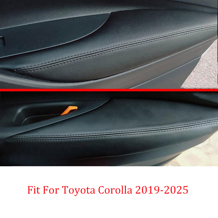 Leather Black Inner Door Armrest Protect Cover 4pcs For Toyota Corolla 2019-2025