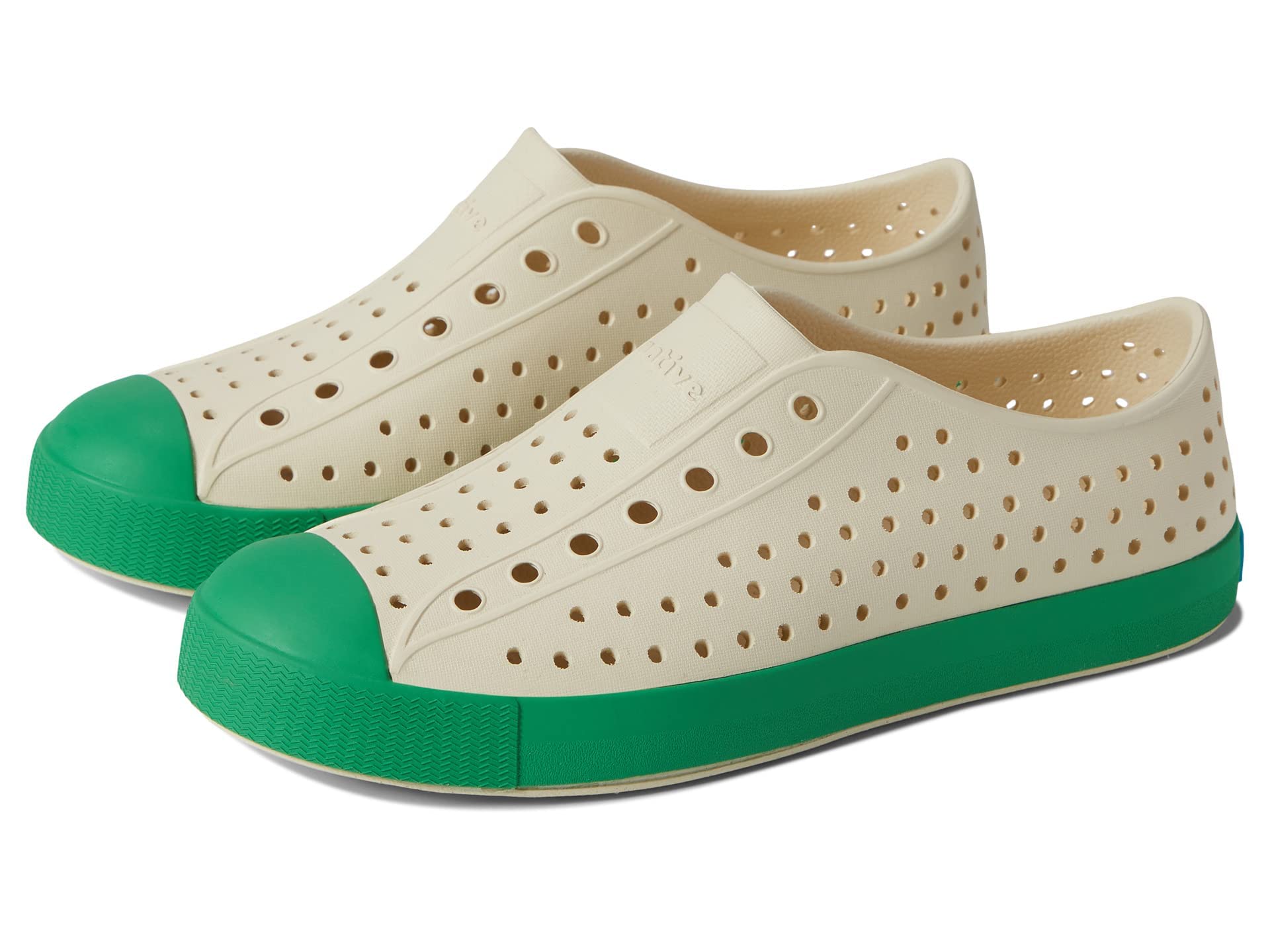 | Native Shoes Kids Jefferson Slip-on Sneakers (Little Kid/Big Kid) - EVA Upper Lining and Sole - Absorbs Shock Bone White/Picnic Green 11 Little Kid M |