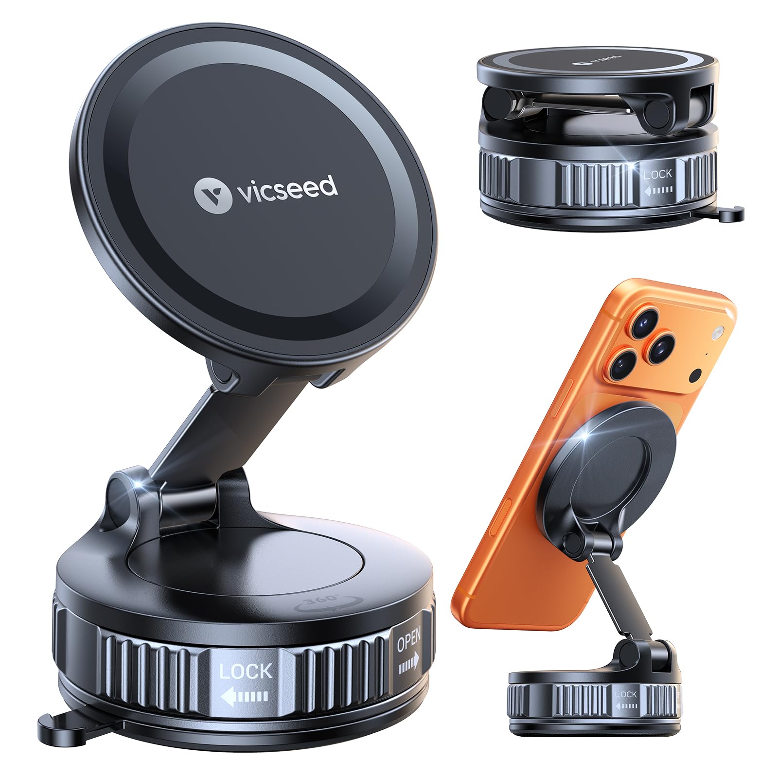 【Ultra-Strong Vacuum Suction, Extremely Stable】The VICSEED upgraded magnetic phone holder for car features a vacuum twist lock and a 5-layer nano-gel suction cup for extremely strong adhesion, delivering up to 300% stronger suction and a load capacity of 98 lbs. It stays firmly in place on dashboards, windshields, and other smooth surfaces, even on bumpy roads or during sudden braking without falling off. The vacuum magnetic phone holder is made aerospace-grade PTFE, tested to military standards for extreme temperatures(-40°F to 300°F). It remains stable and reliable even in extreme summer heat. Suitable for cars, trucks, SUVs, taxis, Uber, Lyft, and boats.