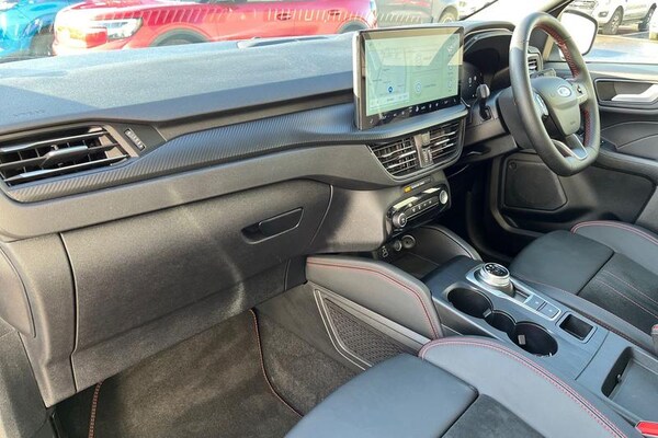 12.3 digital colour instrument cluster, 360 degree view camera, Clear exit assist, Cross traffic alert with active braking, e-Call (emergency call), Ford easy fuel, Ford SYNC 4 Navigation with 13 touchscreen, DAB radio, emergency assistance, Andriod Auto/Apple CarPlay, 5G modem & Ford Pass connect, Front and rear parking sensors, Hands free power tailgate, Lane centering assist, Lane keeping aid with lane departure warning, Power assist steering, Selectable drive modes, Service interval indicator, Auto headlamps with high and low beam, Black roof rails, Body colour bumpers, Front LED fog lamps, Large rear spoiler, LED daytime running lights, LED rear lights, LED third brake light, Pop out door edge protectors, Power front/rear windows with global close, Power heated folding door mirrors with puddle lights, memory function and camera, Power opening panoramic roof, Quickclear heated windscreen, Rain sensing wipers, Rear privacy glass, Rear side wing doors, Rear wiper, ST-Line body styling kit, 2nd row sliding seats, Electronic automatic temperature control (EATC), Front and rear head restraints, Partial premium touch sensico upholstery, Rear centre head restraint, Single front passenger seat, Sports seats, 3x3 point rear seatbelts, Airbags - front driver/passenger, front and rear curtain, Drivers knee airbag, Dynamic brake support, Electronic stability control (ESC) and ABS, Evasive steering assist, Ford MyKey Gen 2 safety system, Manual child proof rear door locks, Pre