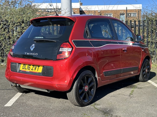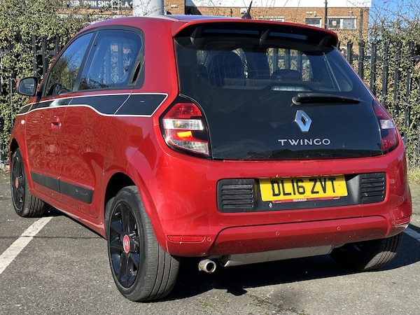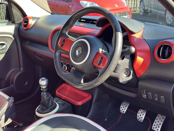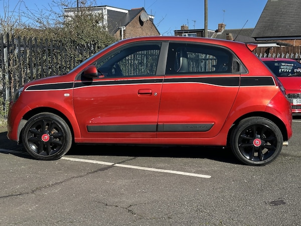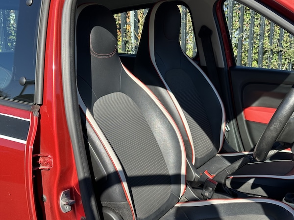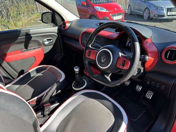 Stunning Flame Red Renault Twingo in great condition throughout. Benefitting from a great service record and recent front discs and pads. Only £20 per year to tax, low Insurance Group, and a claimed combined 60MPG! This great little car will make an excellent first car or city driver. The Renault Twingo has an incredibly small turning circle so will be easy to park just about anywhere! The Dynamique S sat at the top of the Twingo Range, and this well presented example comes with gloss black alloy wheels which are freshly refurbished, and sporty stripe decals. In addition the car comes with part leather seats, DAB Radio, cruise control and telephone and USB compatibility. Inside the car is spacious and comfortable with plenty of room. The 0.9 TCe engine is known for being powerful and efficient, combining effortless driving with ever important low running costs!