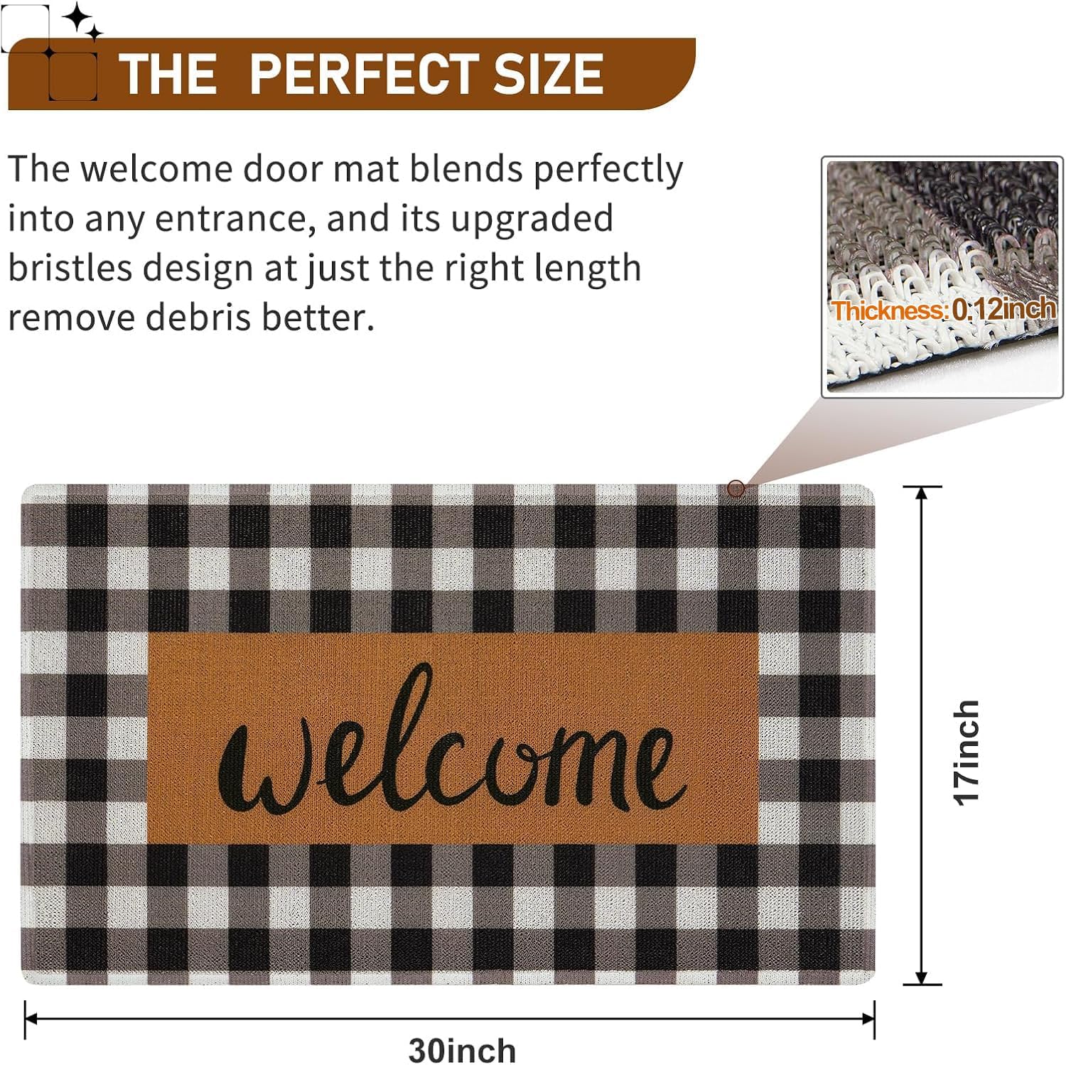 Novel and Stylish DesignThis Wele mats outdoor features a layered look design with a bla and white plaid cheered border and a brown wele pattern in the center. Impr your guests with this uniquely designed door mat that adds a touch of sophisticat to any entrance.