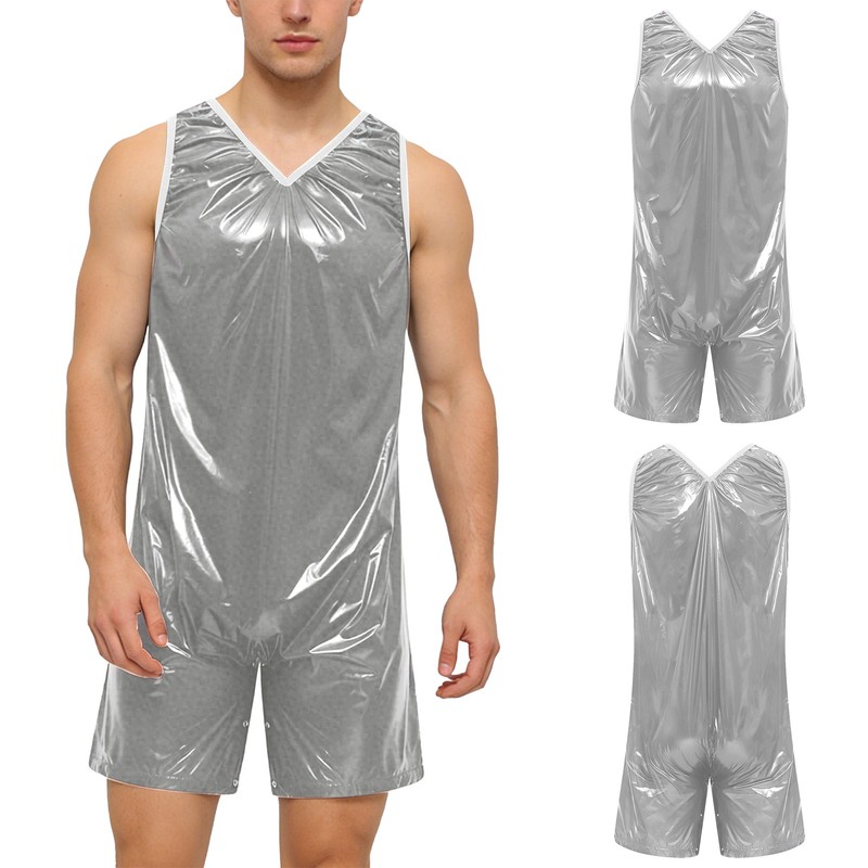 Men Rompers Openable Crotch Nightwear Jumpsuit Bodysuit Carnivals V Neck Games