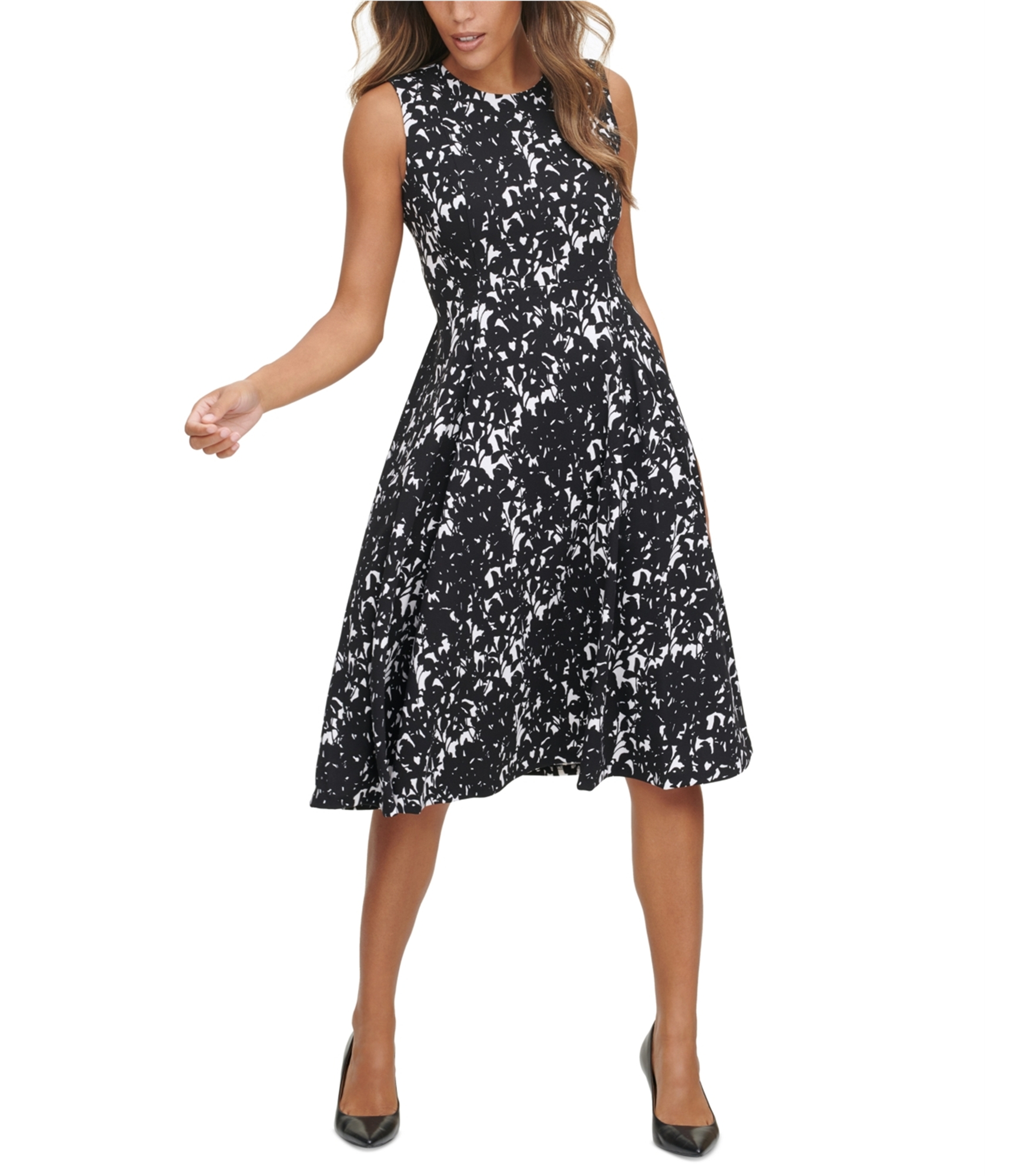 Calvin Klein Womens Sleeveless MIDI Dress Midi Dress, blkwht, 4