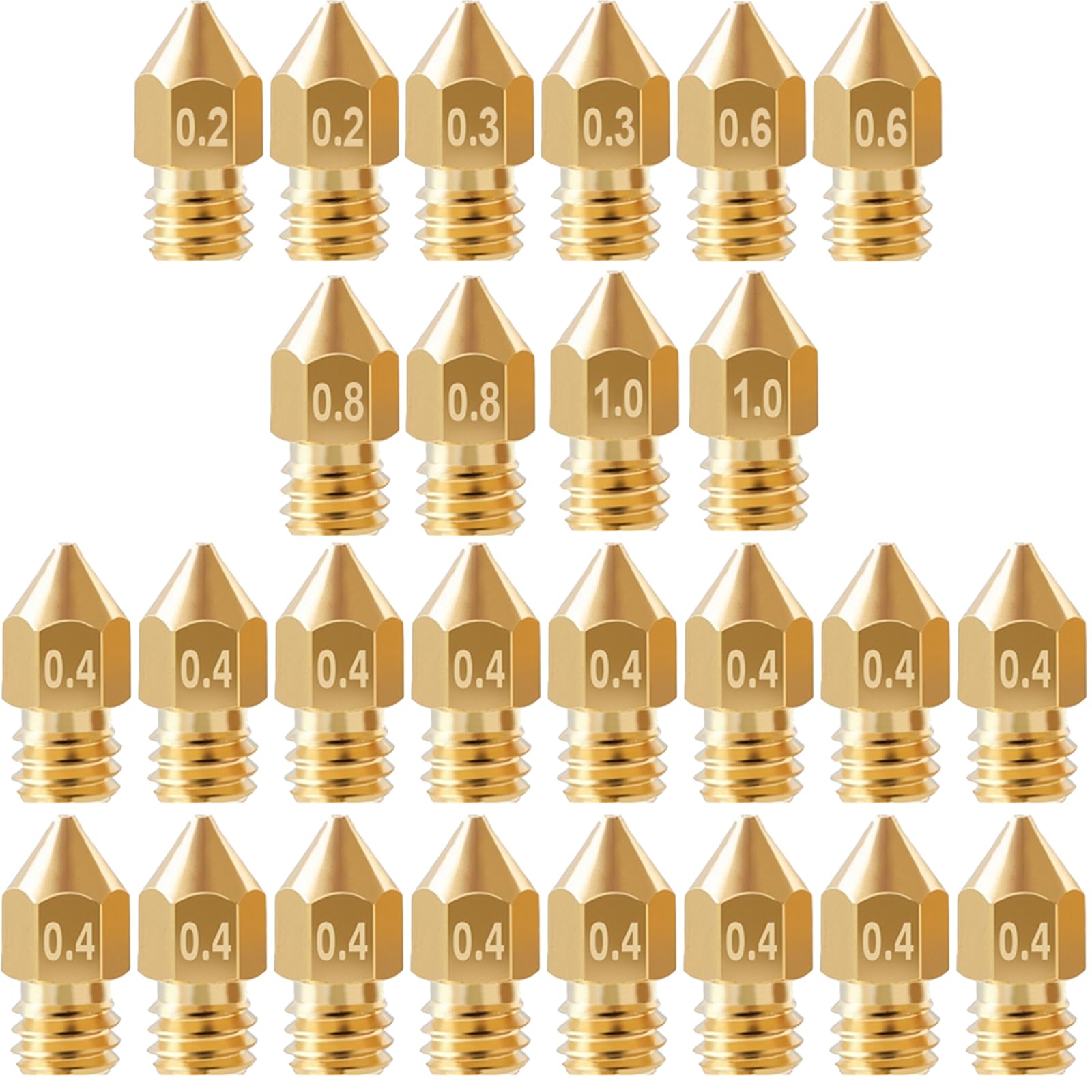 26Pcs Ender 3 Nozzles kit, MK8 Nozzles kit, Brass 3D Printer Nozzles 0.2/0.3/0.4/0.6/0.8/1.0mm Compatible for Creality Ender 3 Pro v2/Ender 3 Max/5 Pro/Ender 3 S1/Ender 3 Neo/CR10 3D Printer Nozzle,