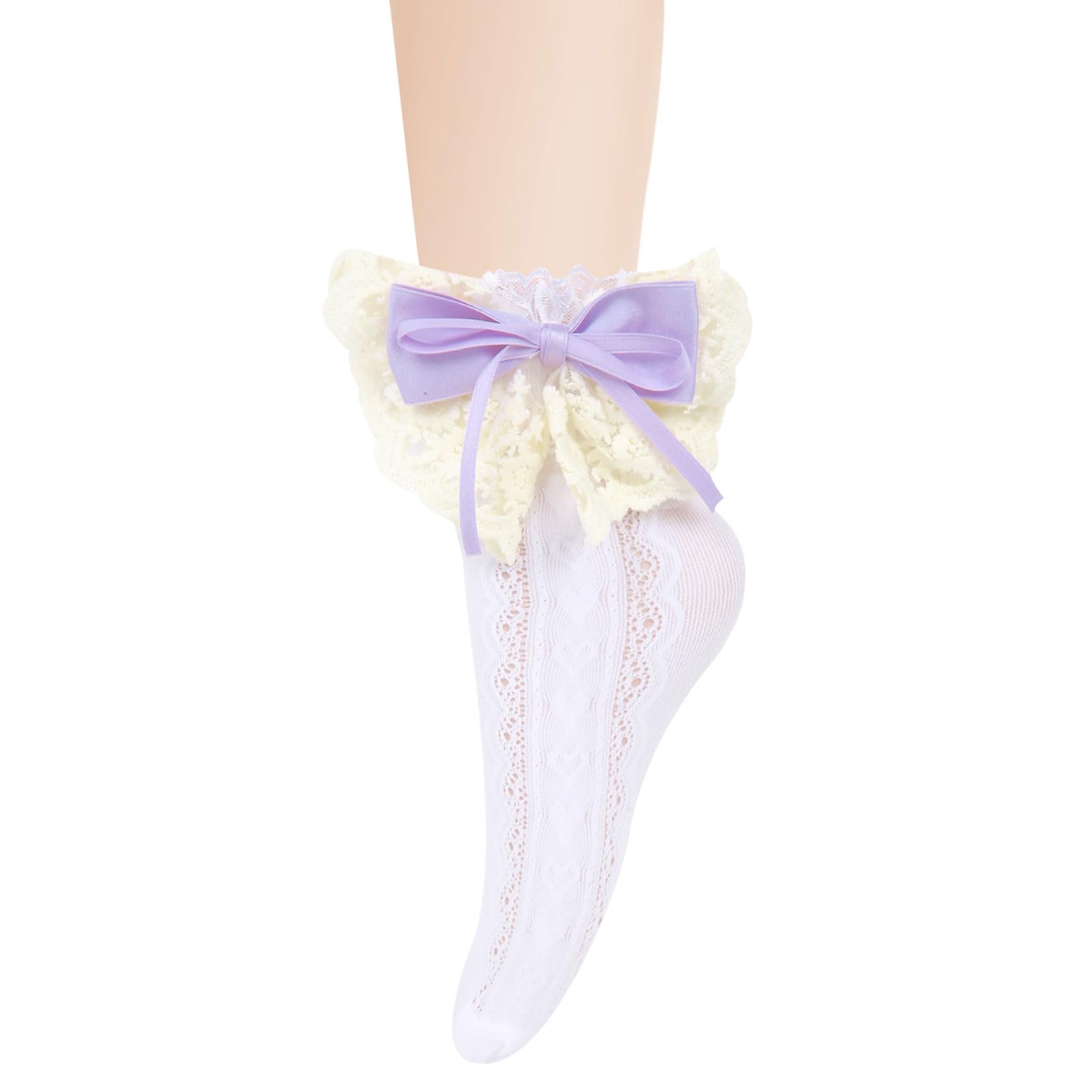 Violet Mist Women Lace Ruffle Socks Girls Cute One Size, Purple Stain Bow
