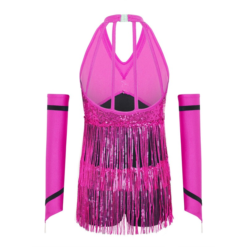 Shiny sequins and color-block design create a dazzling and eye-catching look, perfect for the spotlight of a stage performance.