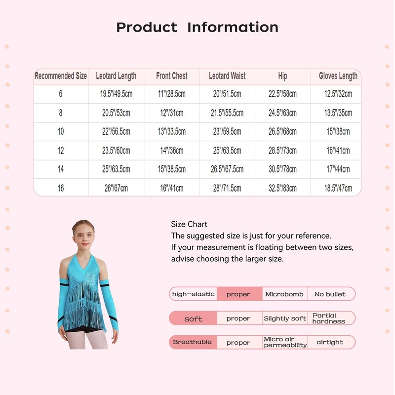 | Tag No. | Recommended Size | Leotard Length | Front Chest | Leotard Waist | Hip | Gloves Length |