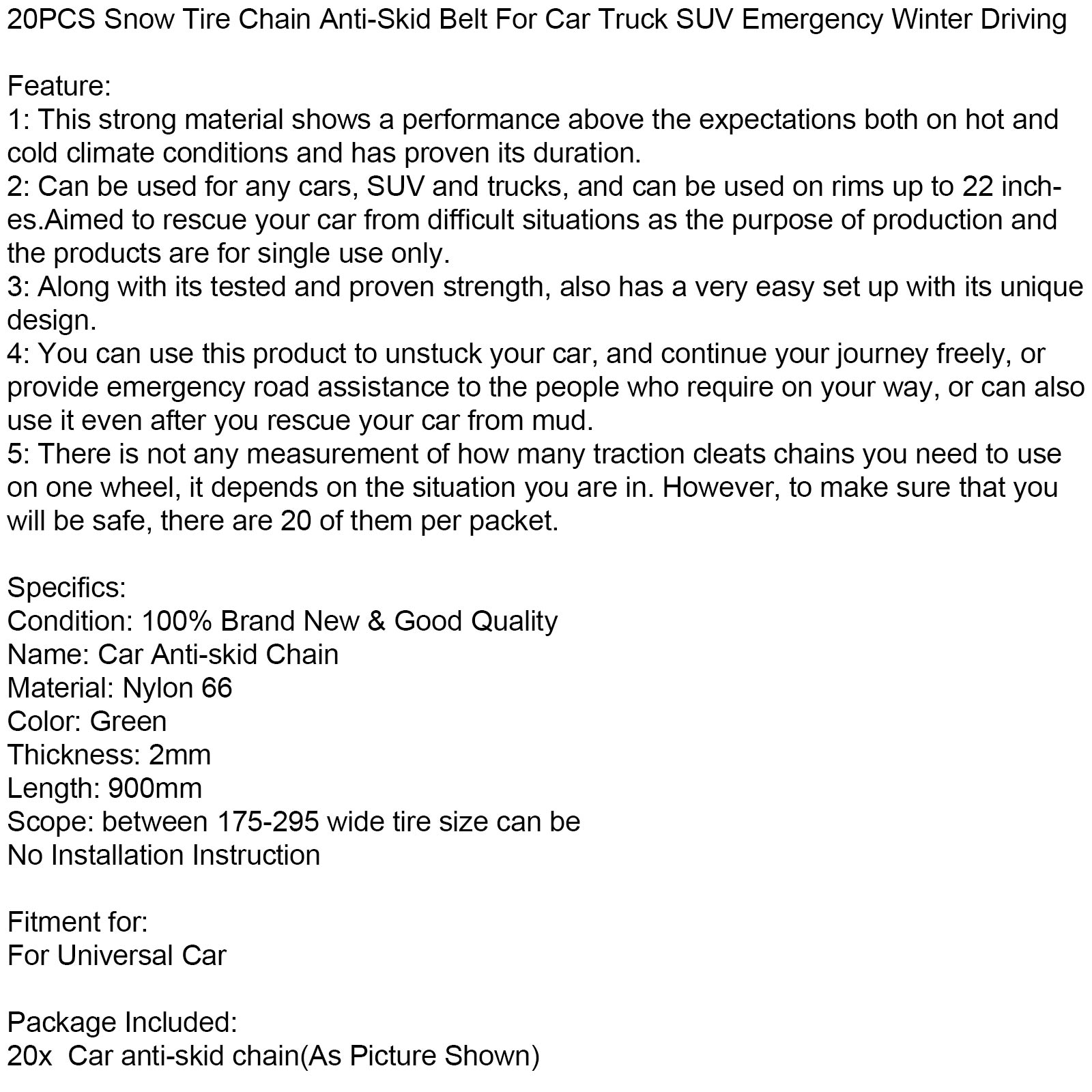 20PCS Snow Tire Chain Anti-Skid Belt For Car Truck SUV Emergency Winter Driving