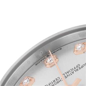 Silver dial with original Rolex factory diamond hour markers. Date calendar at 3 o'clock aperture. |