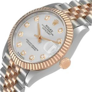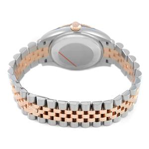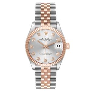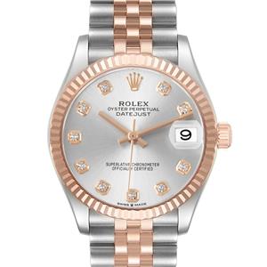 Stainless steel oyster case 31 mm in diameter. Rolex logo on 18K rose gold crown. |
