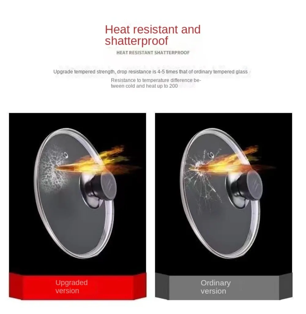 1. **Durable Tempered Glass**: Made from high-quality tempered glass, this universal pot cover is designed to withstand high temperatures and resist shattering. Its robust construction ensures long-lasting durability and reliable performance in any kitchen setting.