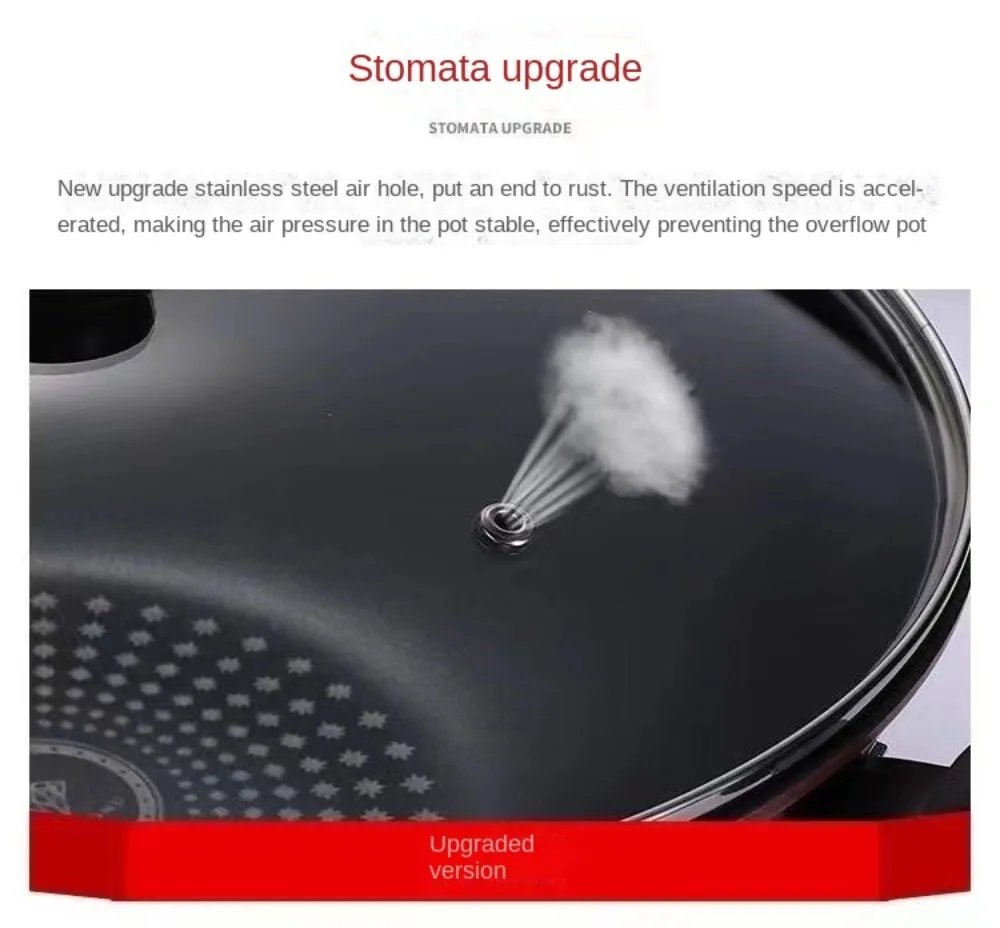 4. **Visible Cooking Process**: The clear tempered glass allows you to monitor your food without lifting the lid, retaining heat and moisture while reducing the need to frequently check on your cooking. This feature helps to maintain consistent cooking temperatures and improves overall cooking efficiency.