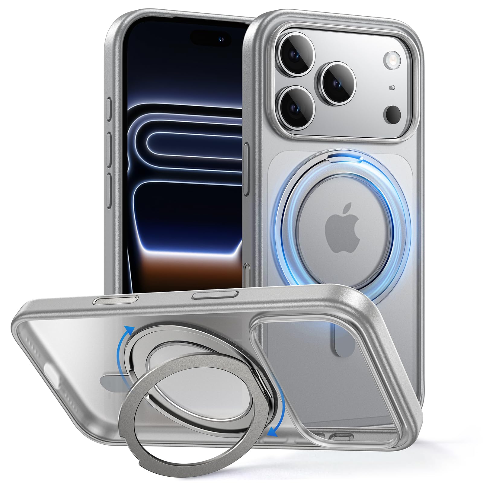 [360° Seamless Kicktand] Designed for iPhone 17 Pro Max case incorporates an innovative invisible stand design offers a wide range of angles from 40 to 120° horizontally and vertically, with 360° rotational flexibility. Made with strengthened Aerospace-Grade Aluminum, it withstands over 30,000 open/close authoritative tests while remaining as sturdy as new. When the kickstand is folded, the back is perfectly flush and seamless, adding no bulk. You won't even sense its existence when touching.