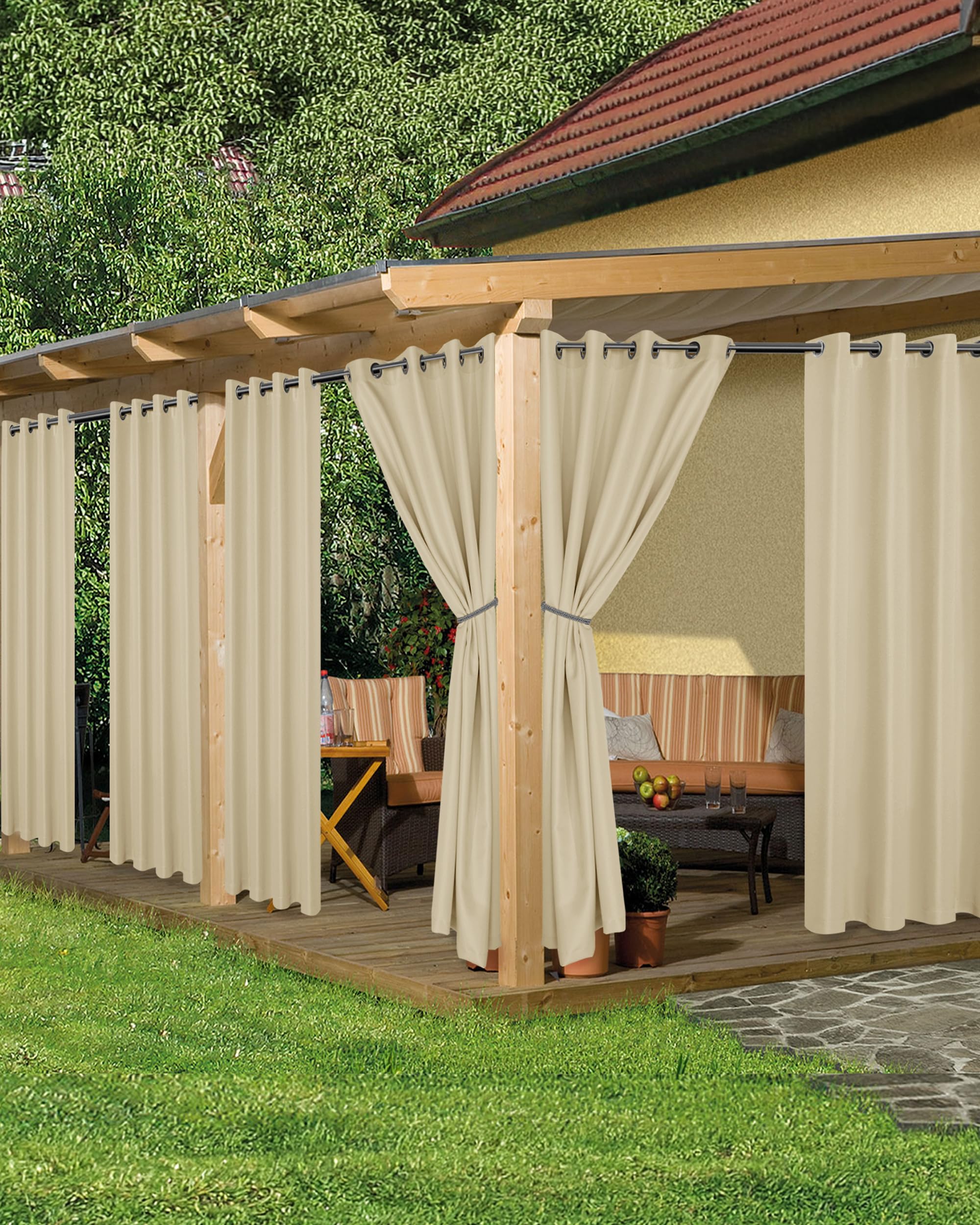 Durable Quality Fabric - Made with high quality polyester fabric that is waterproof and weather-resistant. These outside curtains are designed to provide long-lasting protection against sunlight, UV, wind, and rain.