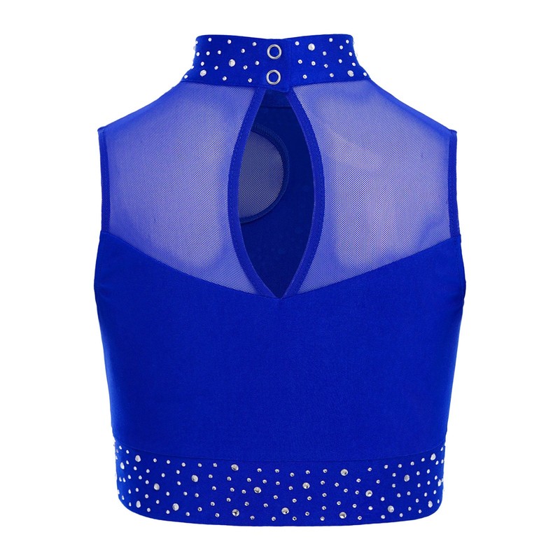 The sleeveless and keyhole back design, along with the sheer mesh patchwork, gives the top a trendy and edgy feel, enhancing the overall aesthetic.