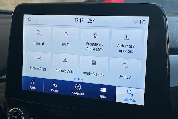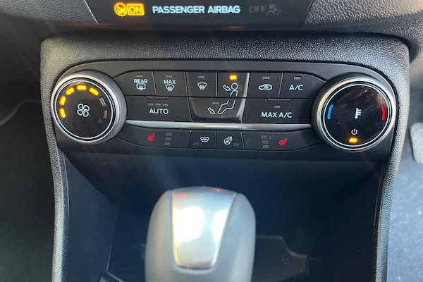 Driver alert system, Electric power steering, Ford easy fuel, Lane keep assist, Lane keeping aid, Rear parking distance sensors, Rear view camera, Selectable drive modes (Normal, Sport, Track), Trip computer, 3rd brake light, Auto high beam, Automatic headlights, Body colour bumpers, Body coloured electrically operated with side indicators, Electric front windows/one touch facility, Electric rear windows, High gloss chrome surround with satin grille insert, LED rear lights, Quickclear heated windscreen, Rain sensing wipers and auto dimming rear view mirror, Rear privacy glass, Rear side wing doors, Rear wiper, 3 rear headrests, 3 seat bench in 2nd row, 4 way manually adjustable passenger seat, Adjustable head restraints, Centre console with opening armrest, 2x cupholders, 12v and USB, EATC - Electronic Auto Temperature control, Leather gear knob, Manual 4-way driver seat adjust, Premium floor mats, Sensico partial premium leather upholstery with metal grey stitching, Sensico wrapped steering wheel, Single front passenger seat, 3 point seatbelts on all rear seats, Electronic stability control with hill start assist, Front and rear seat belt warning, Manual child lock in rear doors, Tyre pressure monitoring system