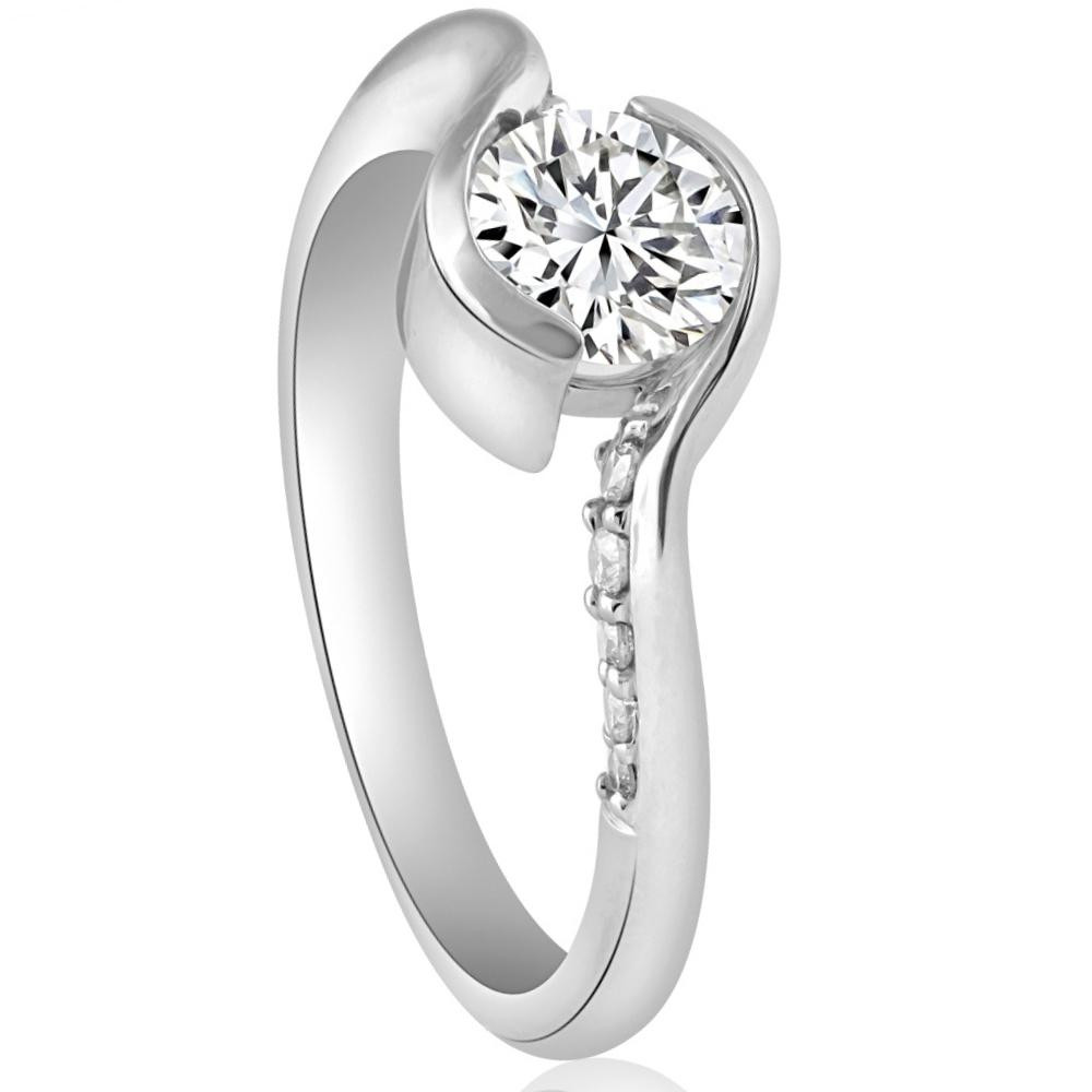 1 1/4Ct Moissanite Bezel Diamond Engagement Ring in 10k White or Yellow Gold