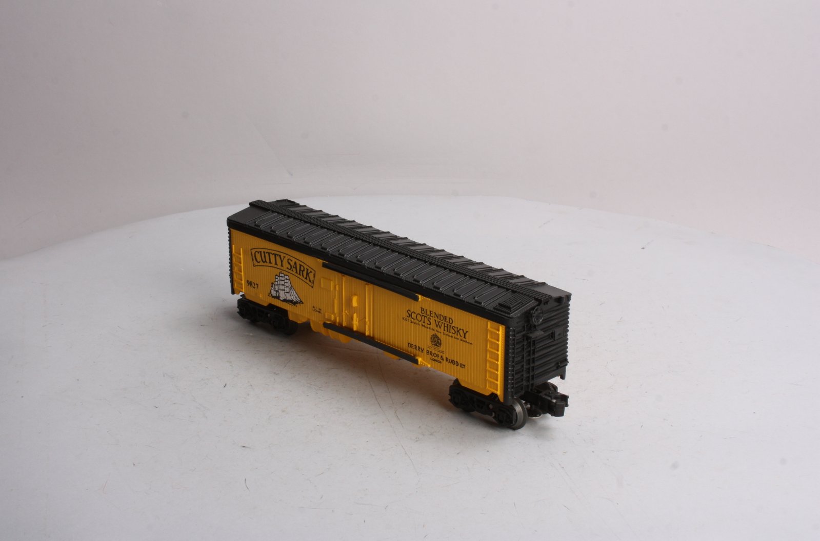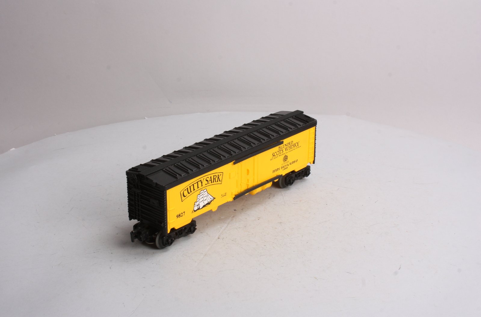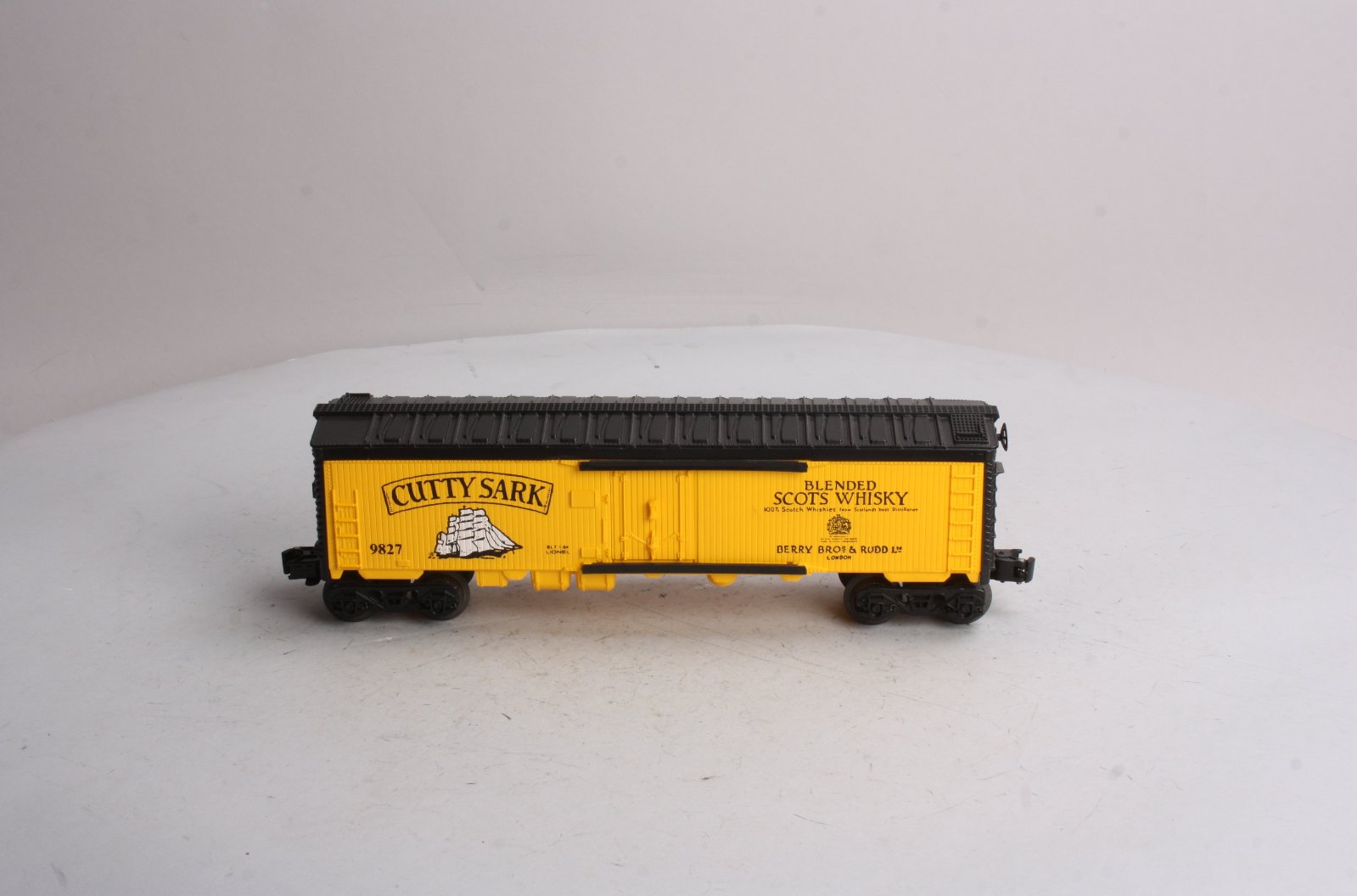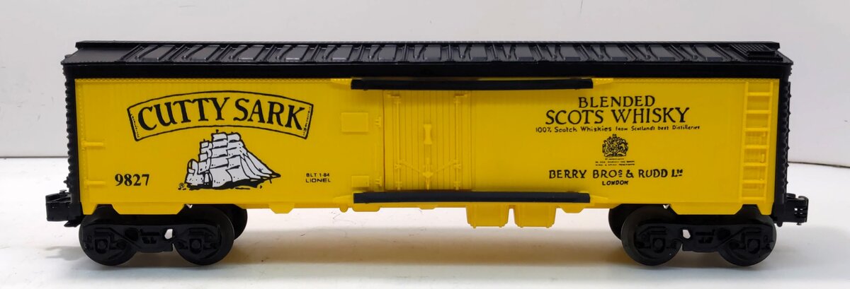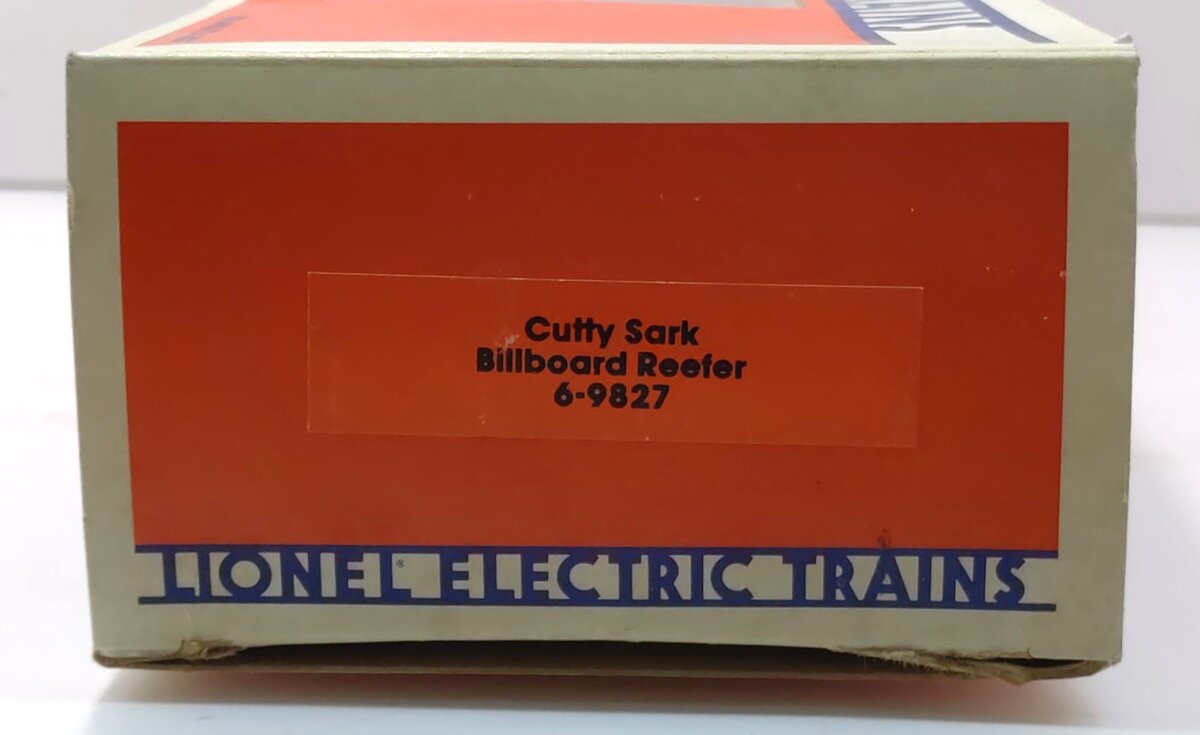 Here is a Lionel 6-9827 O Gauge Cutty Sark Billboard Reefer. This is one of the Famous Spirit billboard liquor cars manufactured in the mid eighties by Lionel and is extremely collectible. This one was released in 1984 and features plastic construction, plastic trucks, knuckle couplers, metal wheels and axles.