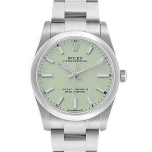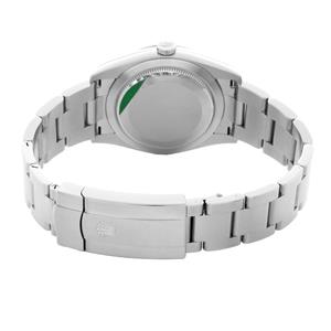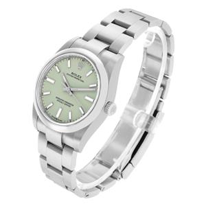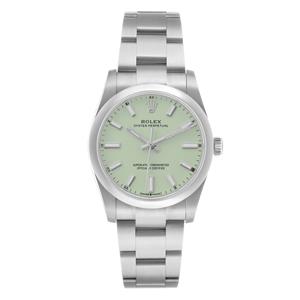 Stainless steel case 34 mm in diameter. Rolex logo on a crown. |