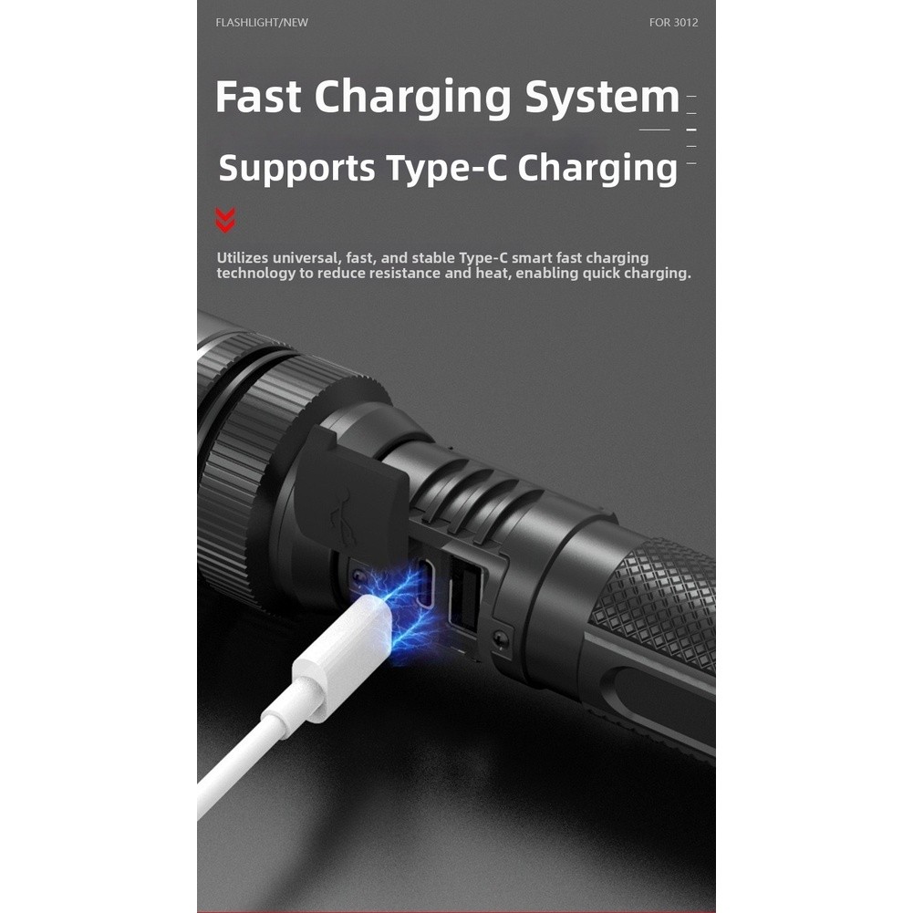 *Fast Recharge and LCD Display: The rechargeable flashlight comes with a high-capacity battery that offers up to 15 hours of usage. With a Type-C fast-charging port that reduces charging time by 50%, the integrated LCD display keeps you informed of the battery status at all times.