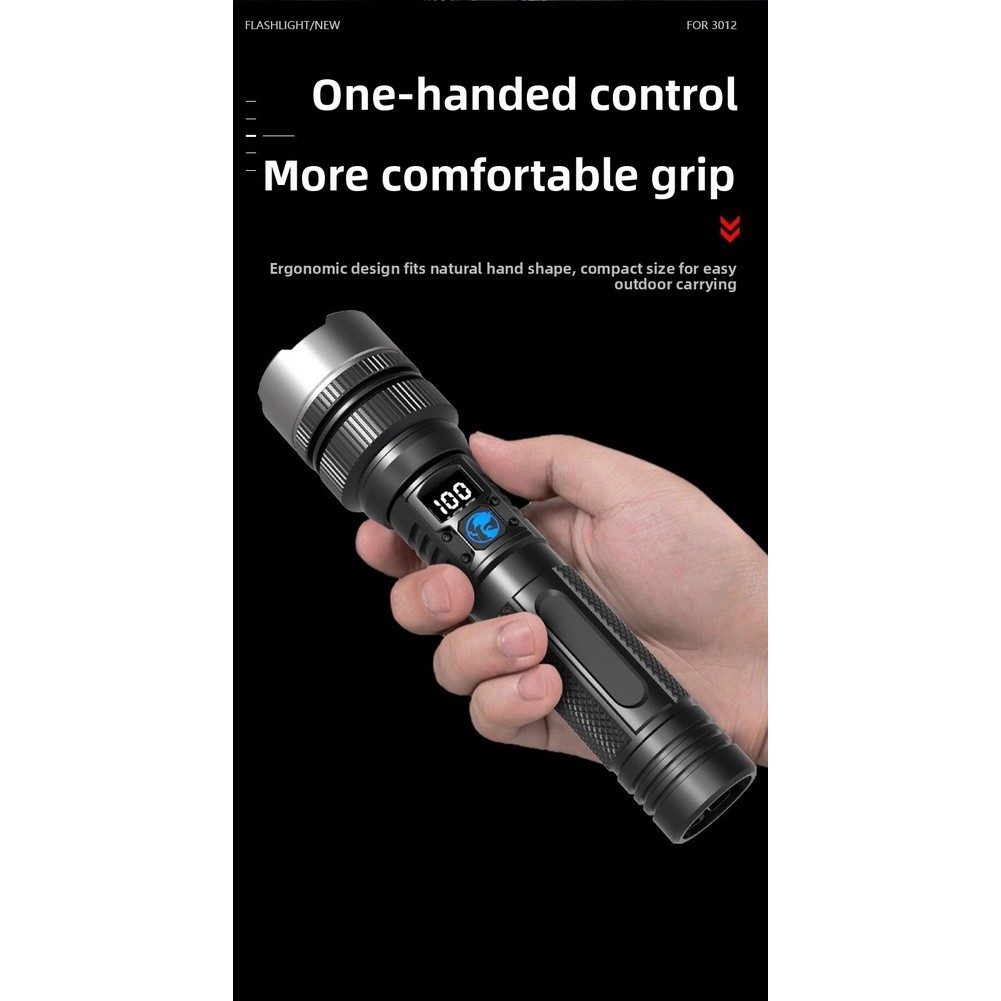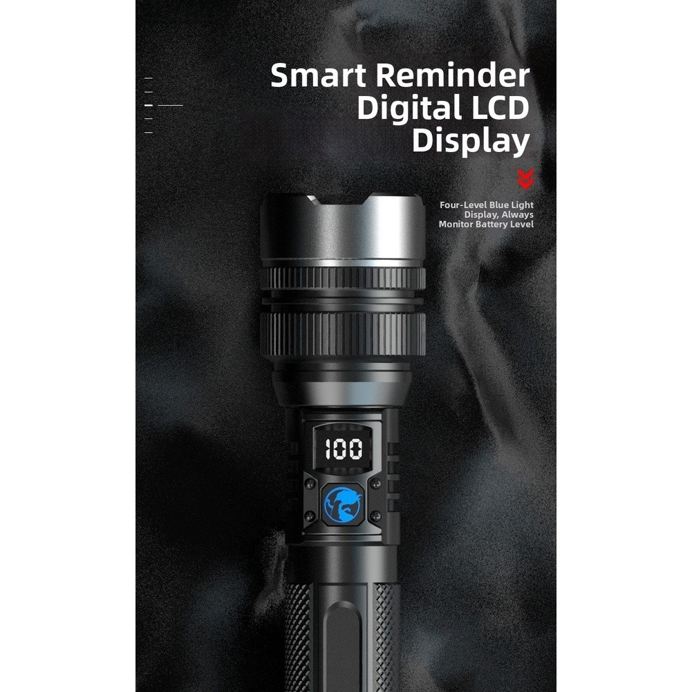 1000 Lumen Zoomable Flashlight with Digital LCD Battery Display Type C