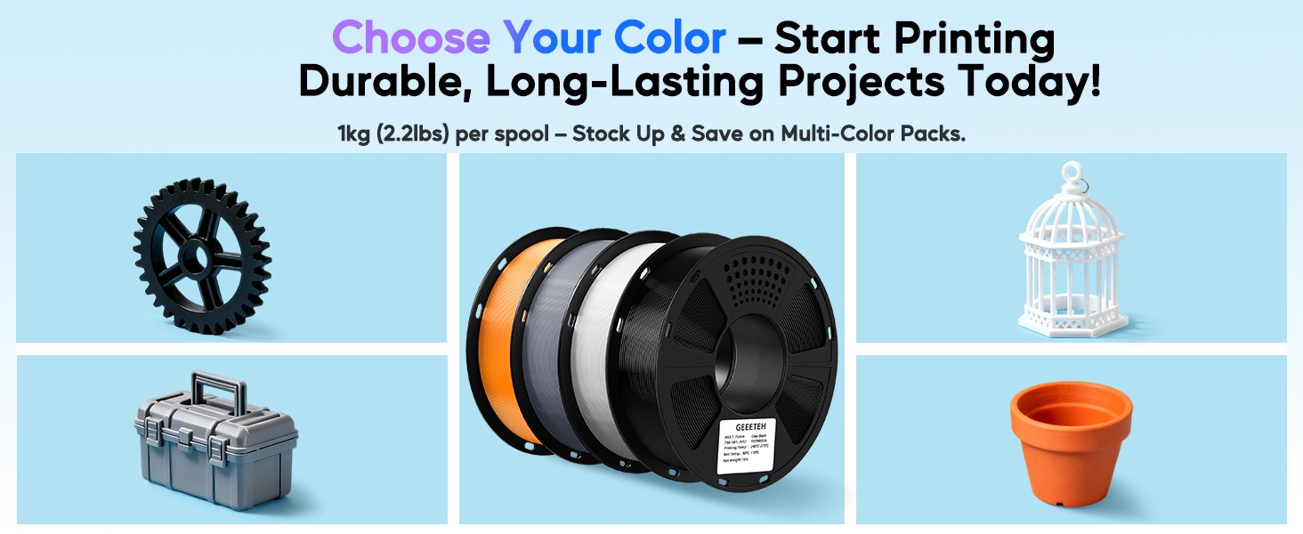 PETG Filament: Das PETG-Filament von Geeetech kombiniert die einfache Druckbarkeit von PLA (geringe Verformung, kein Aufwand) mit der Robustheit von ABS – hohe Schlagfestigkeit, ausgezeichnete Schichthaftung und geringe Schrumpfung. Perfekt für mechanische Teile, Outdoor-Werkzeuge und langlebige, funktionale Kreationen, die den Anforderungen des realen Einsatzes standhalten. Wasserdicht, chemikalienbeständig und lichtbeständig – hält Hitze, Feuchtigkeit und Stößen mühelos stand. Lebendige, lang anhaltende Farben eignen sich für Cosplay-Requisiten, Spezialwerkzeuge oder Outdoor-Ausrüstung. Vereint Klarheit, Zähigkeit und Stabilität für unendliche kreative Möglichkeiten. |