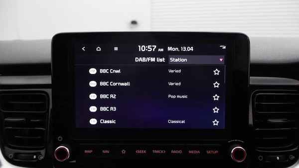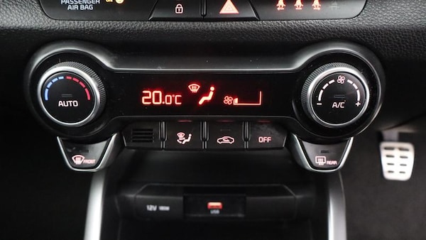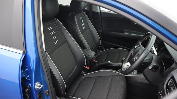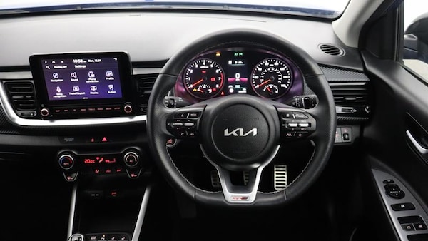 17 GT-Line alloy wheels, 8 Touchscreen navigation featuring Kia Connect (UVO), Two-tone Paint with contrasting roof colour, Heated front seats and steering wheel, Smat cruise control (DCT only), Smart key with engine start/stop, LED rear combination lamps, Front parking sensors, Blind spot collision warning, GT-Line black cloth and faux leather upholstery, Roof-coloured door mirrors with matt black lower housing, Roof-coloured rear spoiler with high-mounted brake light, Intelligent speed limit assist (ISLA), Rain sensing front wipers, Smart cruise control (DCT only), Blind spot collision avoidance - rear (DCT only), Passenger seat height adjust, Auto-dimming rear-view mirror, Luggage net, Privacy glass (rear windows & tailgate), LED headlights, LED front fog lights, Alloy pedals, Reversing camera, Automatic air conditioning, GT-Line body-kit, Black rear spoiler with high-mounted brake light, Chrome side window trim, LED Bi-function projection headlights with static bending, D-cut perforated leather trimmed steering wheel, Black high gloss centre fascia, Kia Connect (UVO), Aluminium pedals, Drive mode select, 8 Touchscreen display, Apple CarPlay & Android Auto via connectivity, Air conditioning, Forward collision-avoidance assist (FCA) (city/pedestrian/cyclist), Roof rails, Rear parking sensors, LED daytime running lights, Bi-function projection headlights with static bending, Cruise control & speed limiter, High gloss black & satin radiator grille, Electrically adjustable