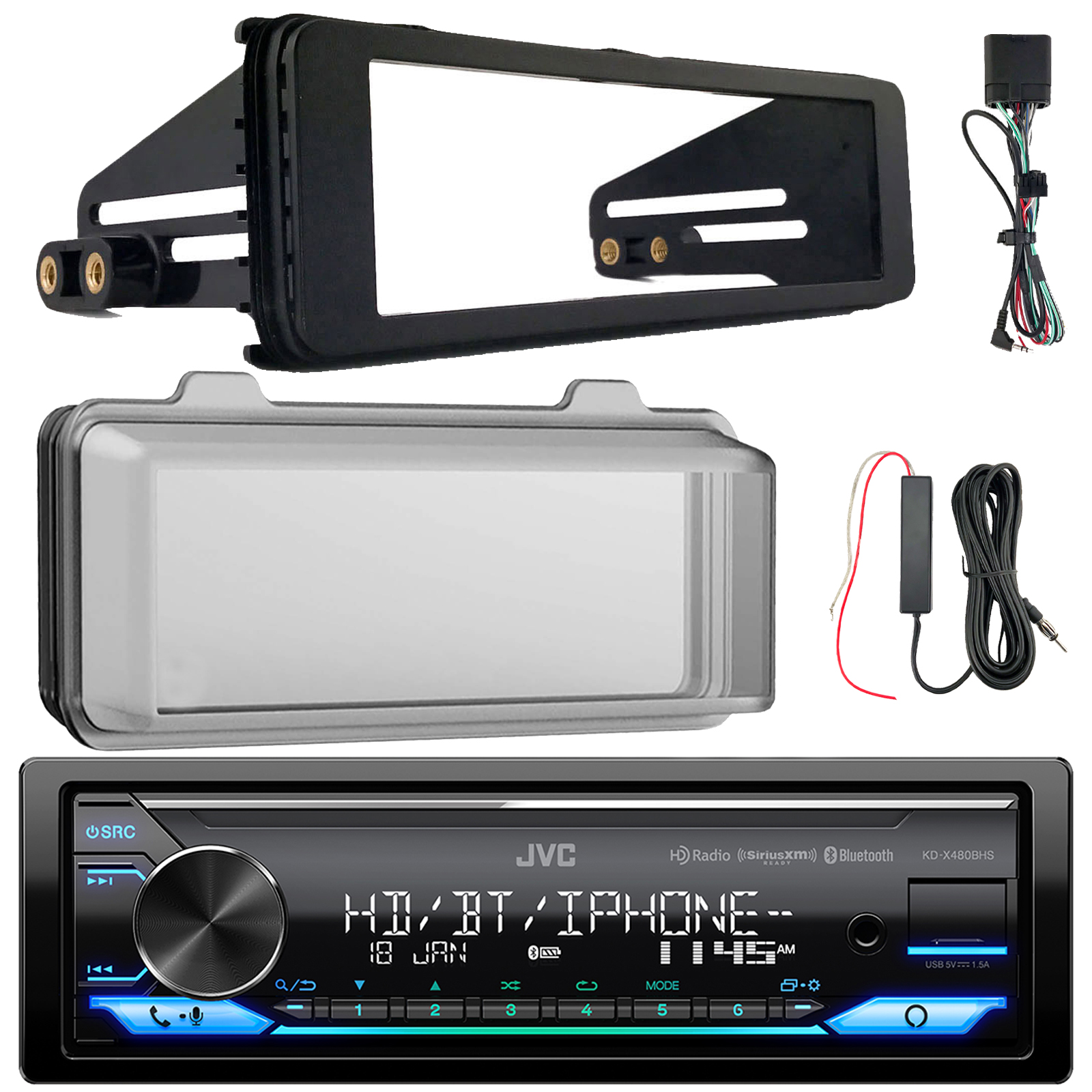 JVC KD-X480BHS Single DIN Bluetooth USB/AUX LED AM/FM Radio SiriusXM Ready Amazon Alexa Stereo Receiver W/Stereo Install Kit + Weather Shield Receiver Cover, 12V Signal Reception Amplifier Booster Kit