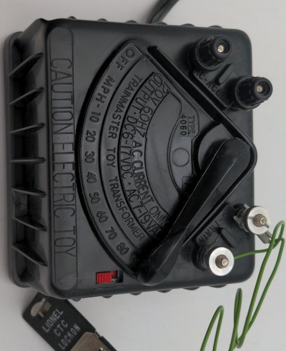 Here is a Lionel 4060 AC/DC Trainmaster Transformer. It features terminals for DC engines and AC engines and accessories. This transofrmer is for DC trains, not typical O27 Lionel trains that run on AC. Built in automatic circuit breaker, forward/reverse switch, and safety plug.