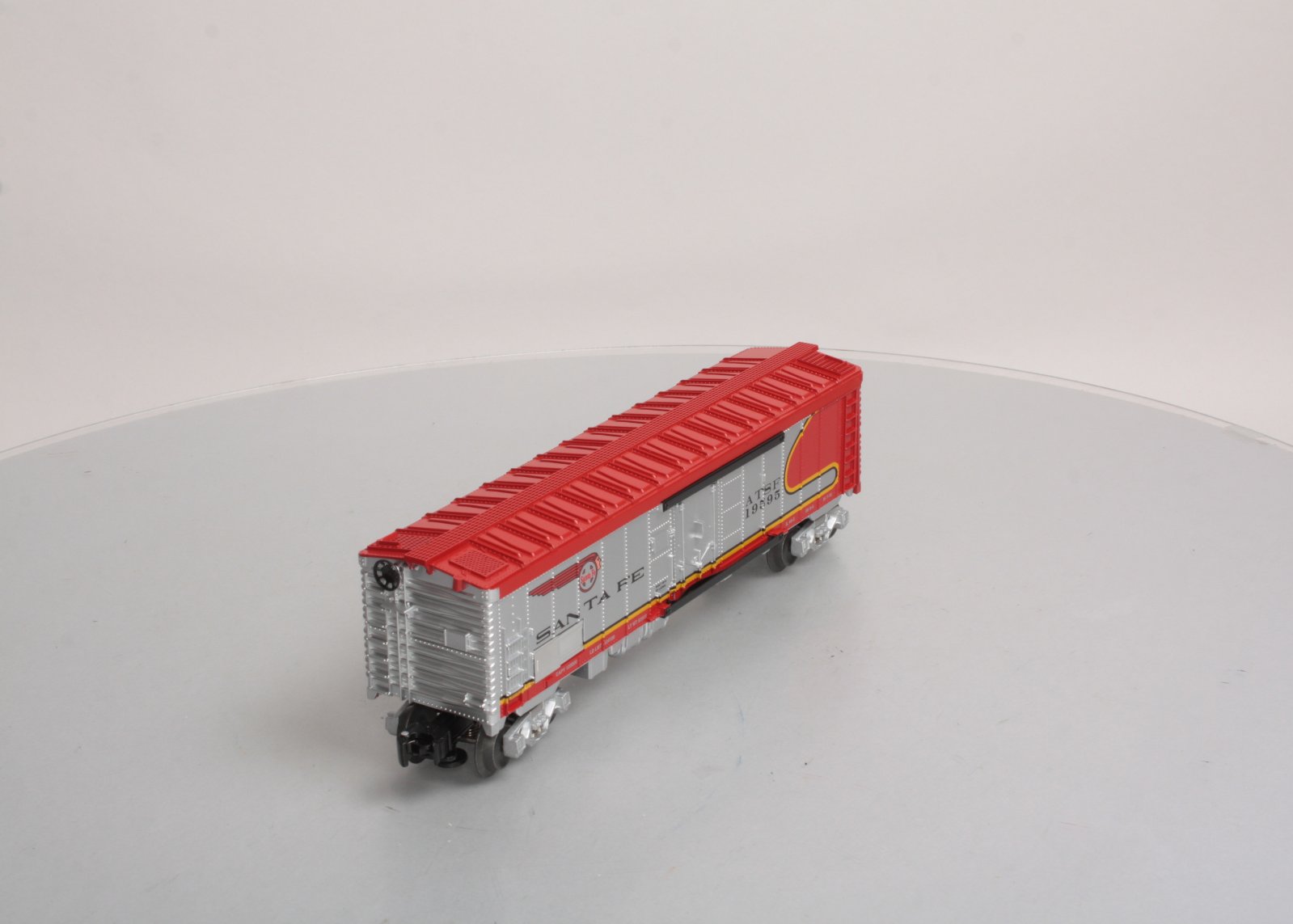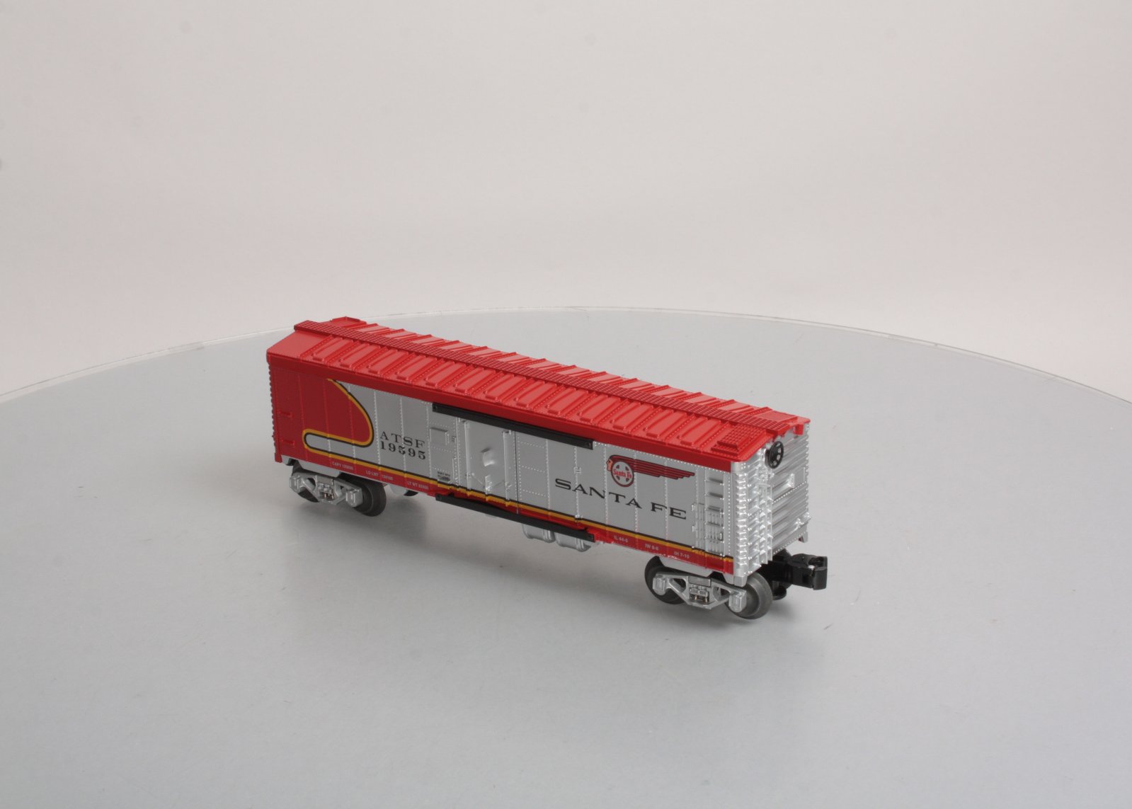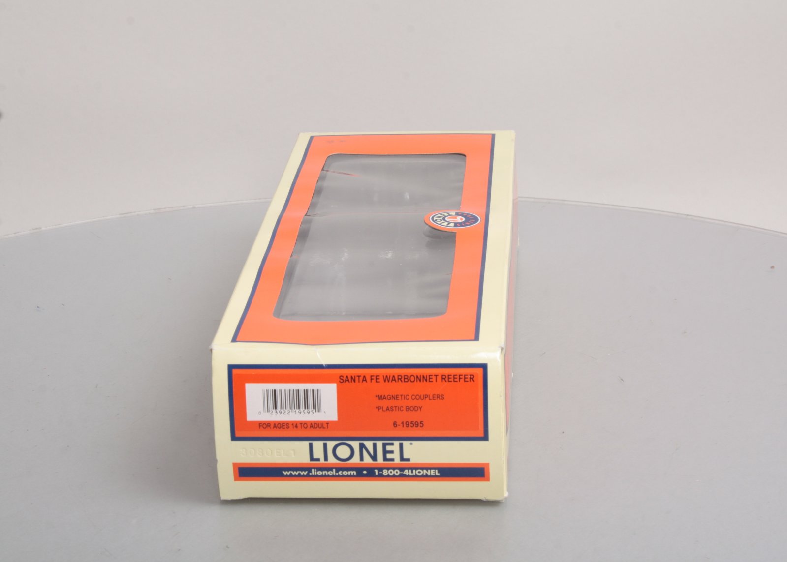 Here is a Lionel 6-19595 O Gauge ATSF Warbonnet Reefer Car. Includes Die-Cast Metal Spring-Action Trucks, Opening Doors, Sliding Metal reveals Control Panel, O Gauge, Length 11 ¼ inches.