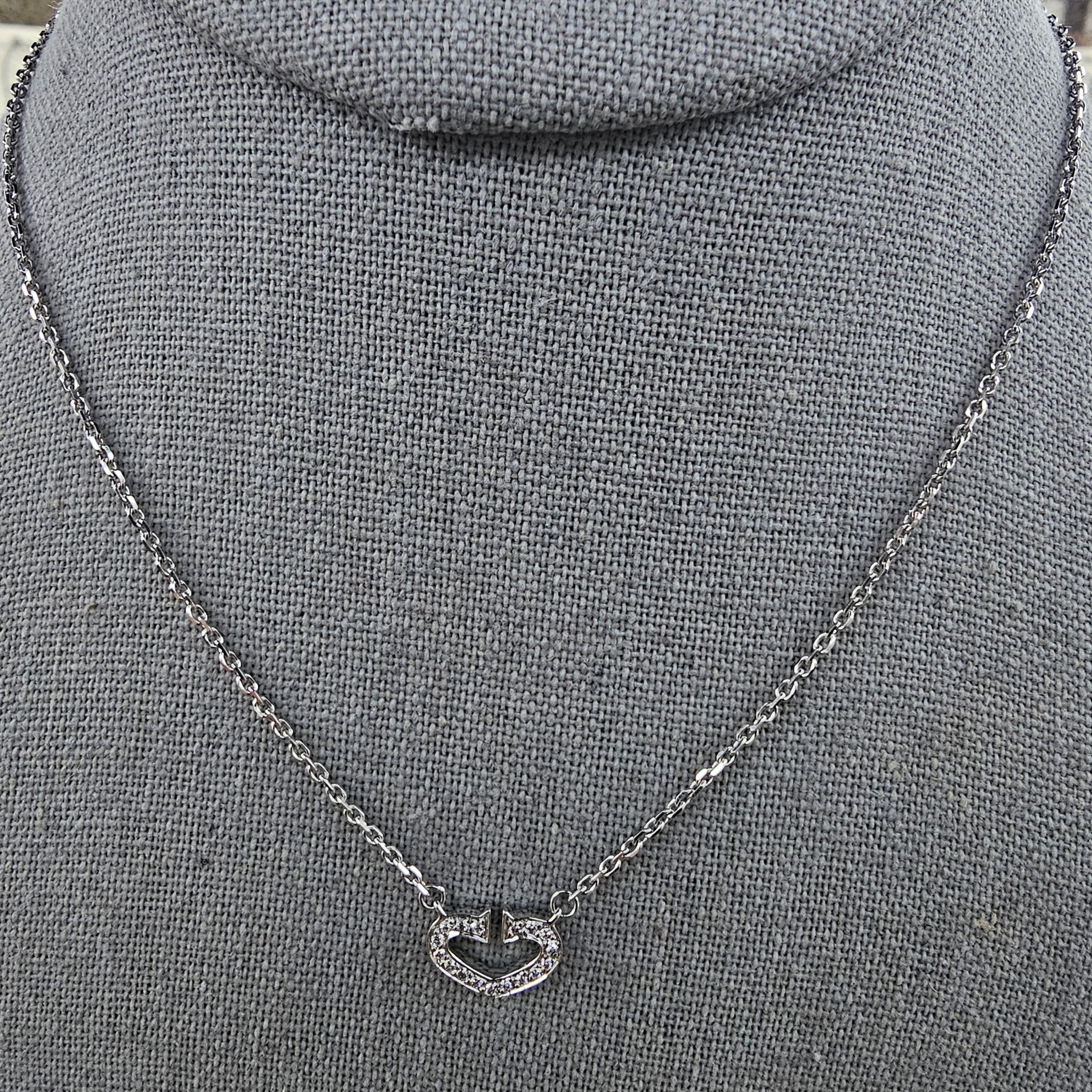 This elegant Cartier pendant necklace features a refined heart-shaped pendant adorned with round, white diamonds. The pendant is crafted in 18k white gold, showcasing a sleek and polished design that exudes sophistication. The delicate chain complements the pendant, offering a seamless and graceful look.