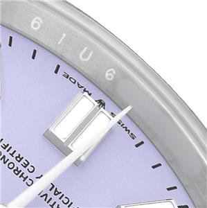 Lavender dial with luminous baton hour markers and hands. Outer black stick minute markers. |