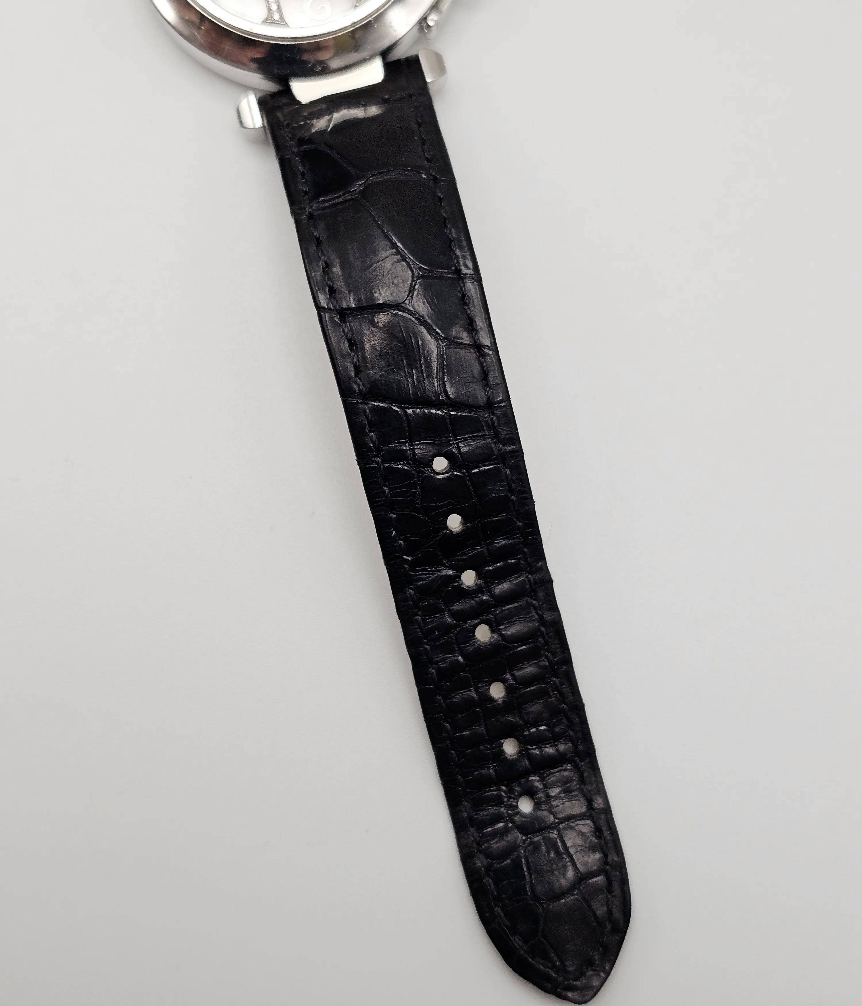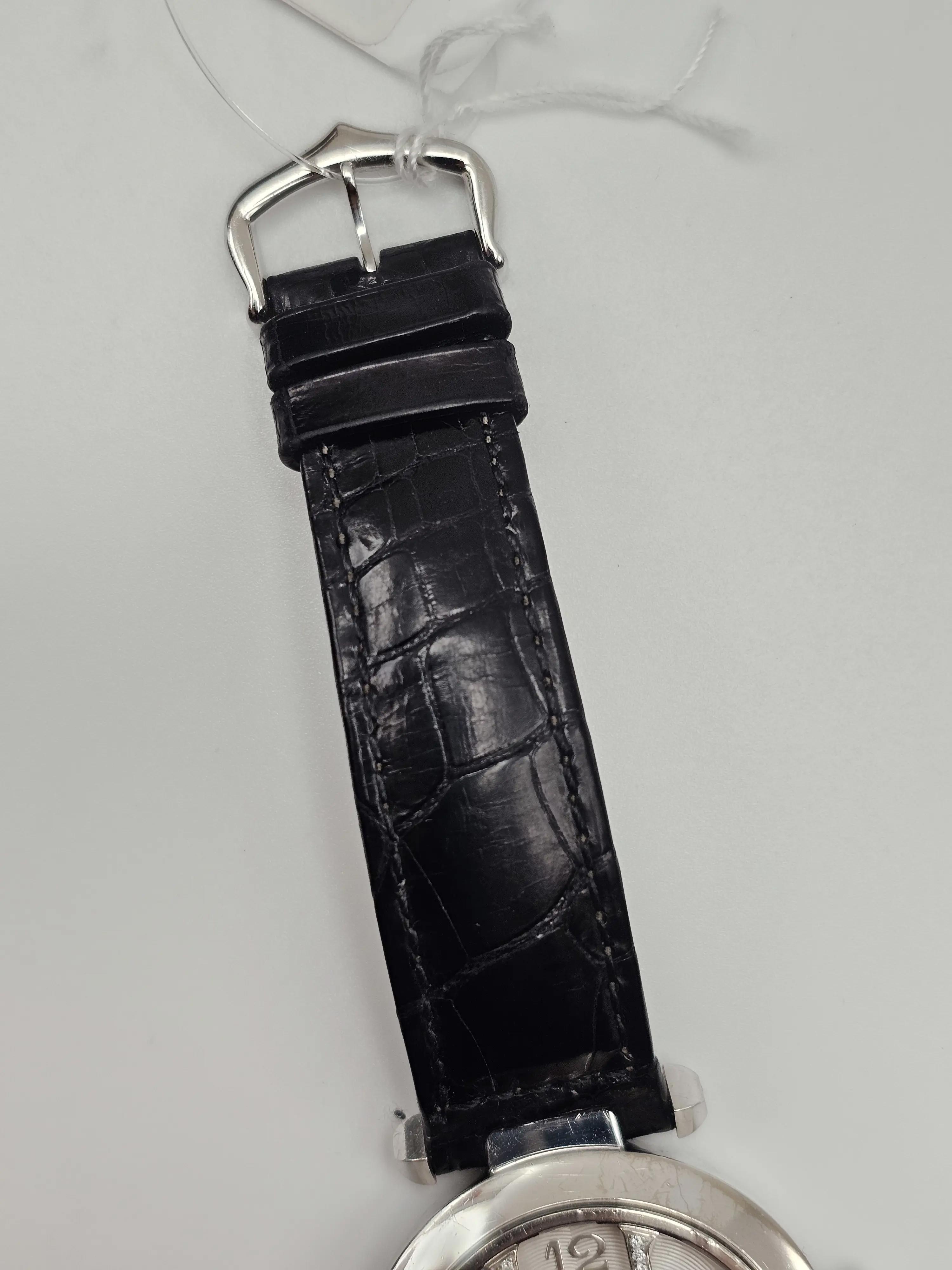 Pre-owned in good overall condition. The case shows visible surface wear consistent with regular use, including noticeable scratches and scuffing throughout, particularly along the bezel and case edges. The crystal appears clear with no major chips or cracks observed. The dial remains in excellent condition, with all markers and diamond accents intact and well-preserved. The leather strap shows signs of wear from use but remains functional and presentable. The watch has been inspected and is running properly. Additional Note: Polishing is available upon request to improve the overall appearance and bring the watch closer to like-new condition prior to shipment. No original box and papers