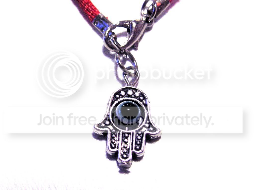 MagiCleaner Beauty The hamsa is a Kabbalistic symbol of protection from evil and it is said to bring positive energy, health and good fortune. The word hamsa means "five" and symbolizes God's protective hand. This hamsa includes a blessing for the travelers in English or Hebrew . According to the kabbalah tradition the Red String protects us from the influences of the Evil Eye and bring you health and fortune. Evil Eye is a very powerful negative force. The blue eye inside The Hamsa is also very good way to protect yourself from Evil Eye All the biggest Hollywood stars wear it Maddona, Demi More , Ashton kutcher , Sarah Jessica Parker, Victoria Beckham , Briteny Spears
