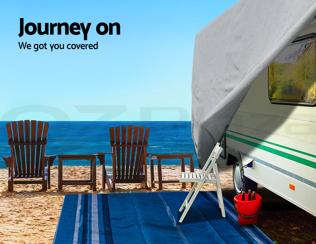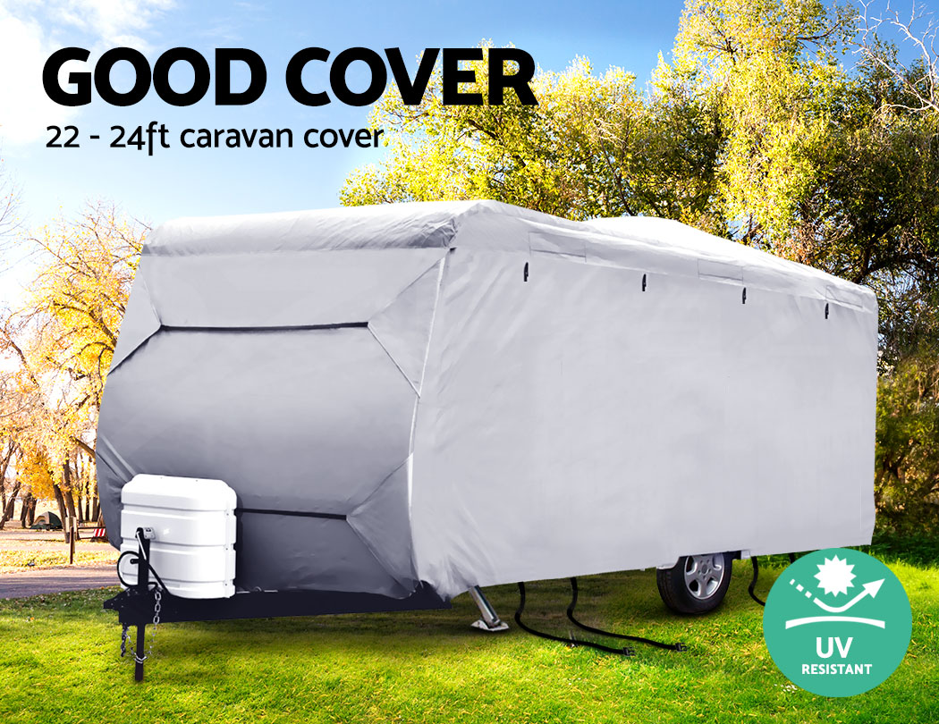 Designed to suit a caravan size with a roof length of 22" and bottom length of 24", our Caravan Cover is your best travelling accessory for a well-protected caravan at all times.