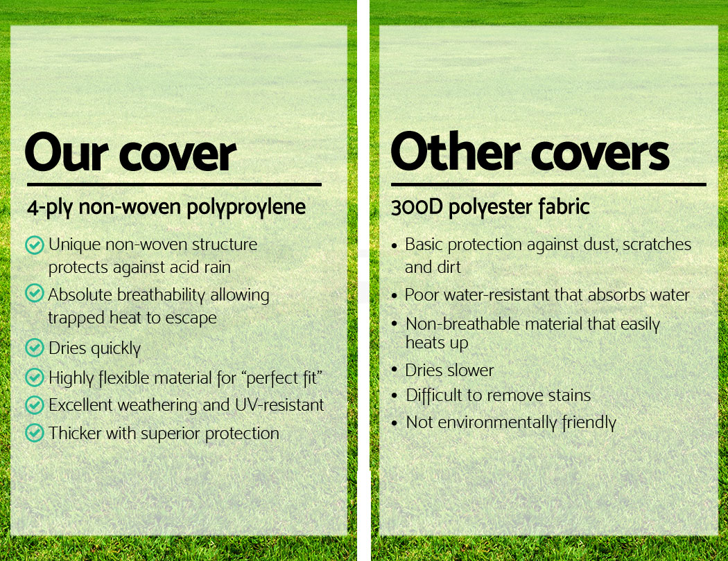 Beware of cheap polyester alternatives! This is a heavy-duty caravan cover made of top-grade genuine 4-ply non-woven polypropylene. Now that we’ve made that clear, you can now discover why our caravan cover is supremely far superior.