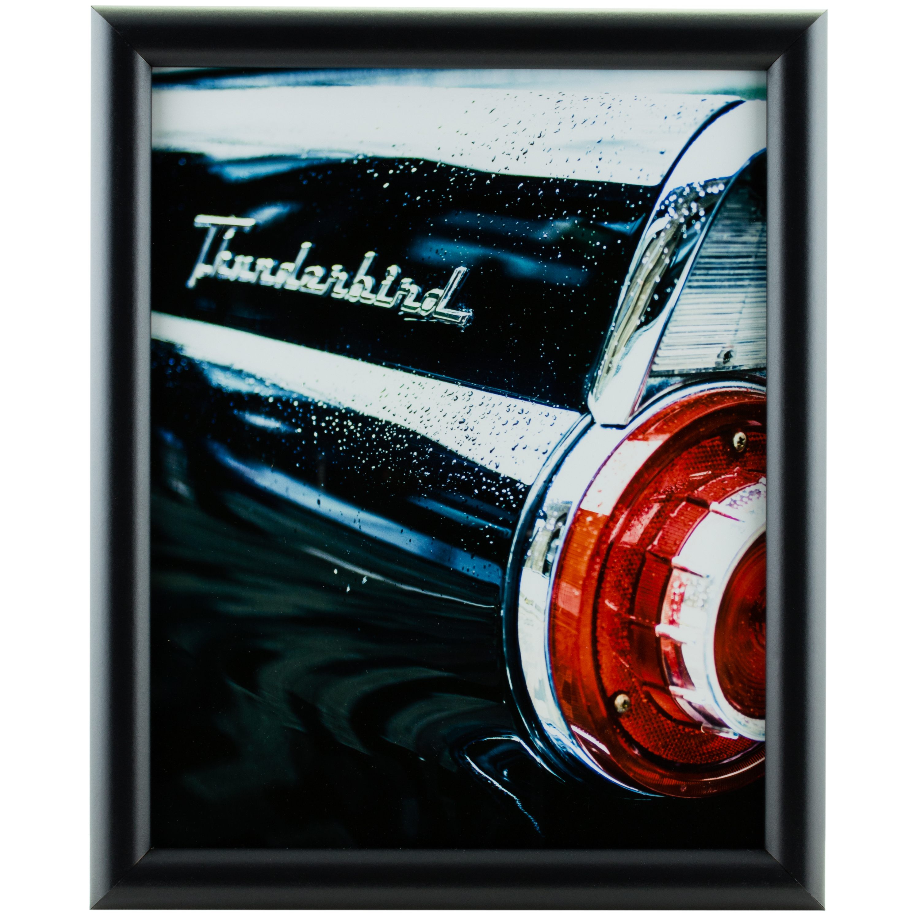 - Frames smaller than 12×18 come with glass facing and rigid black backing with two (2) attached hangers. Frames 12×18 and larger come with .050 acrylic facing and rigid cardboard backing with hanging hardware.