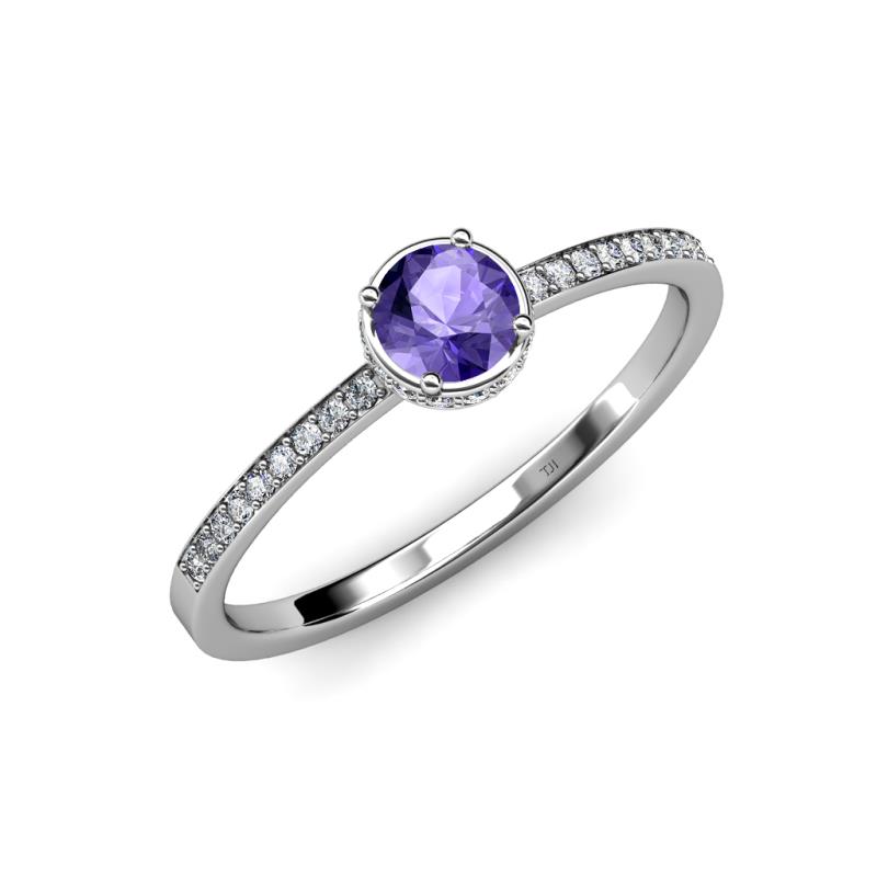 DetailsThis Elegant 0.83 ct tw Halo Engagement Ring showcases a crown of Center Iolite which sits pretty along the string of Diamonds with additional Diamonds on the shank making it a generous gift of love.