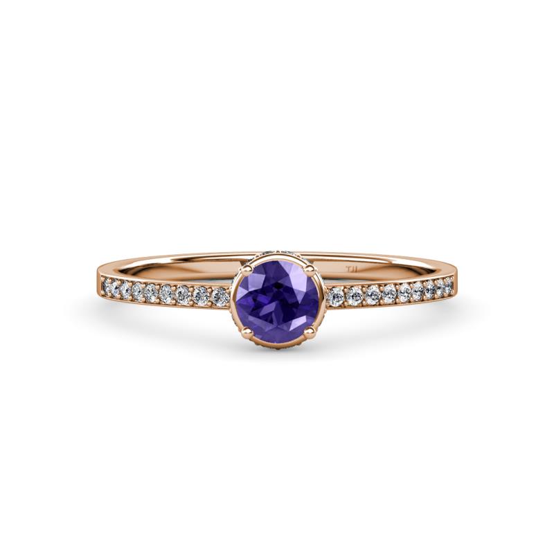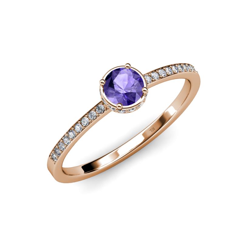 Iolite and Diamond Womens Halo Engagement Ring 0.83 ctw 14K Gold