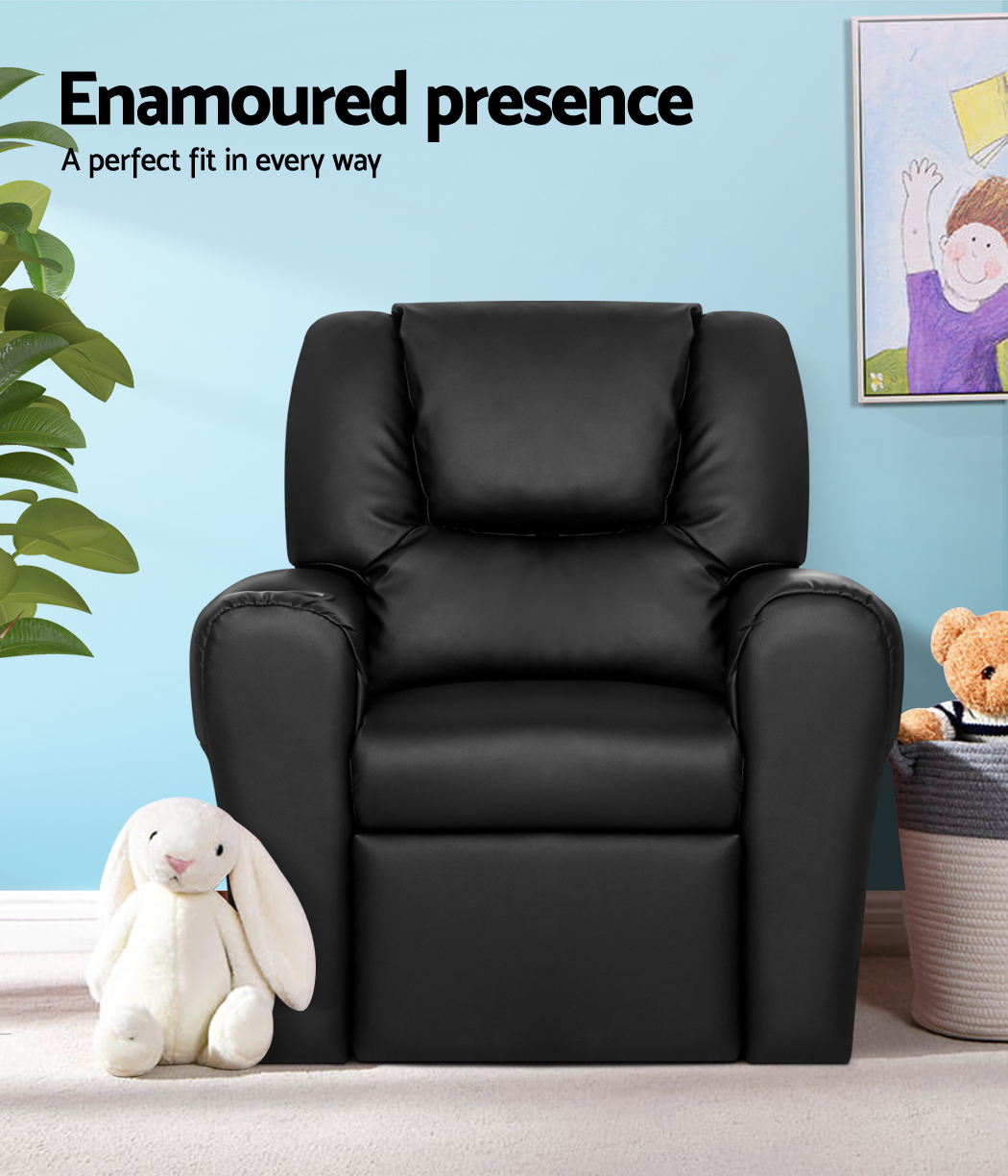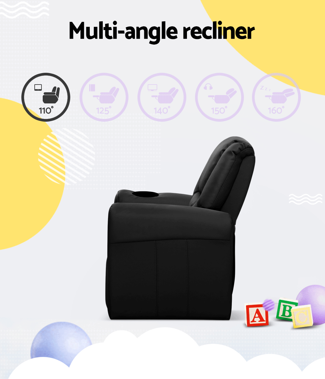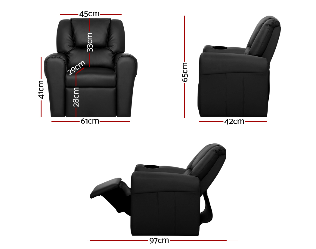 Made of PU leather and upholstered with 9cm of plush cushioning, this Kids Recliner offers total luxury for your child to sit back and relax, read, listen to music, watch TV or play games on mobile devices comfortably. The wide armrests provides for great arm support while the sturdy construction makes it very child-safe and durable. And with the built-in cup holder, the Recliner is ever ready to have your child’s favourite drink at close hand.