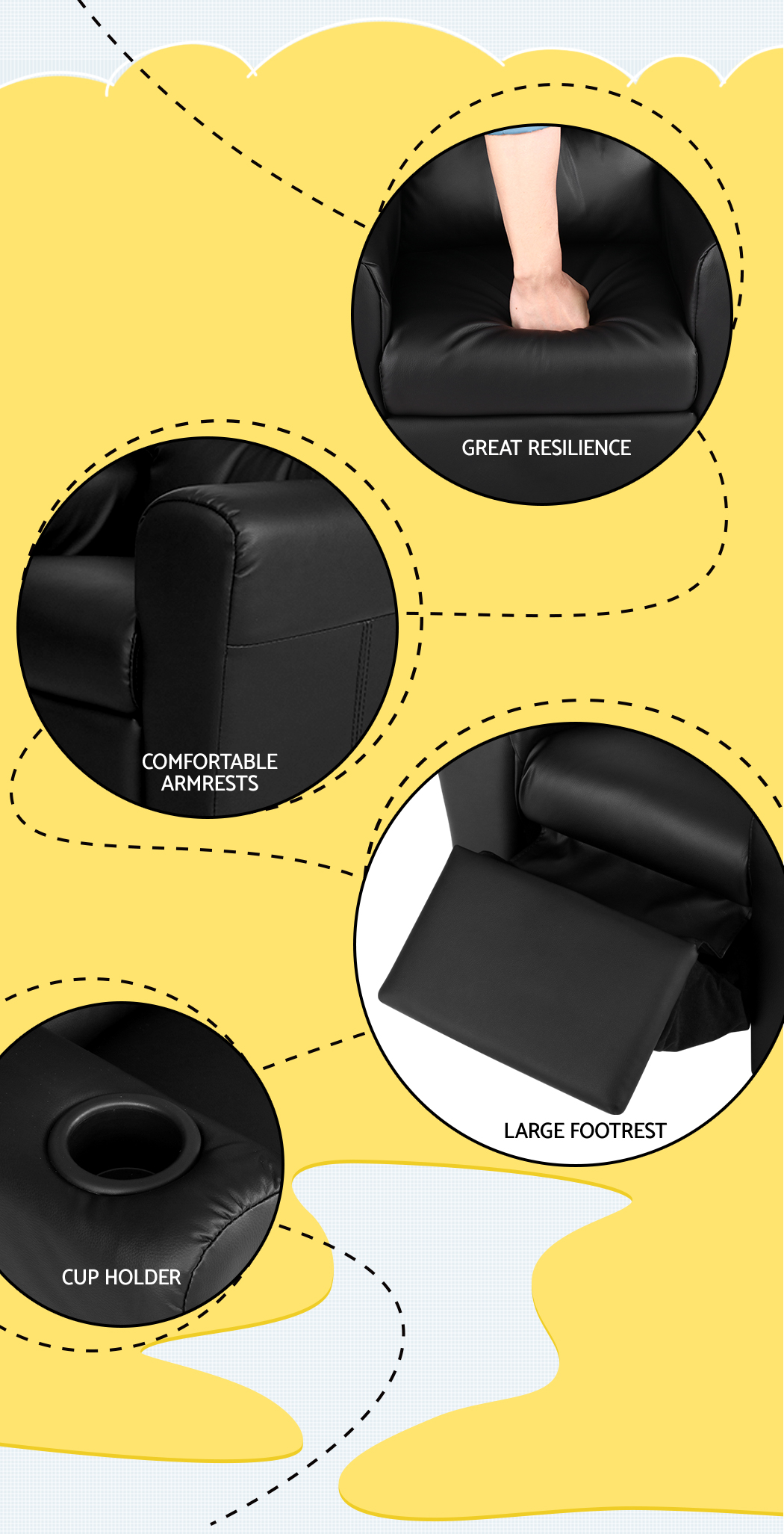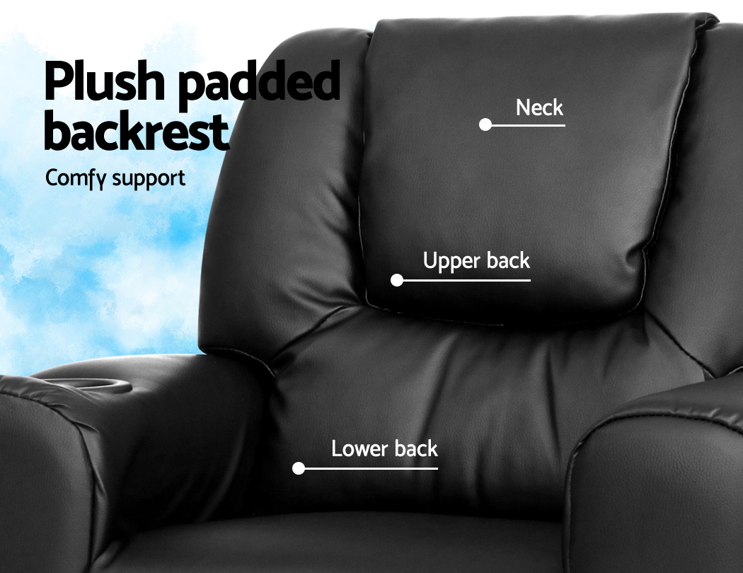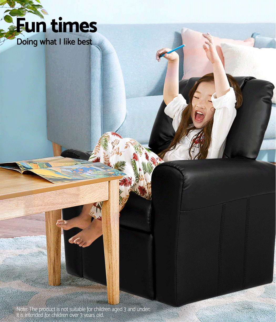Made of PU leather and upholstered with 9cm of plush cushioning, this Kids Recliner offers total luxury for your child to sit back and relax, read, listen to music, watch TV or play games on mobile devices comfortably. The wide armrests provides for great arm support while the sturdy construction makes it very child-safe and durable. And with the built-in cup holder, the Recliner is ever ready to have your child’s favourite drink at close hand.