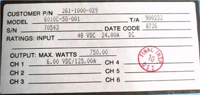 6 VDC @ 125 Amps @ 750 Watts