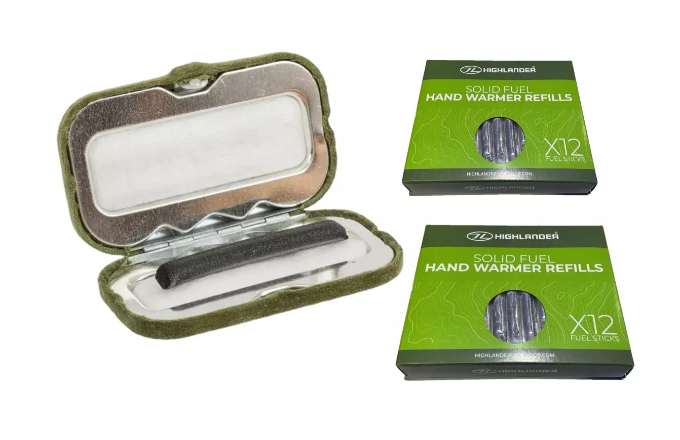 Highlander Charcoal Pocket Hand Warmer + 24 Fuel Spare Burner Refill Sticks