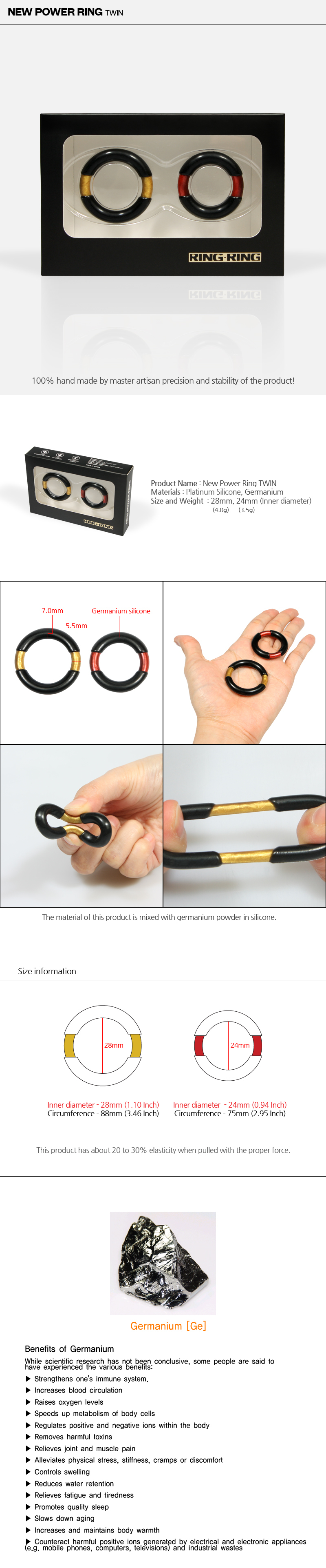 Inner diameter 24mm (0.94 Inch) / Circumference 75mm (2.95 Inch)