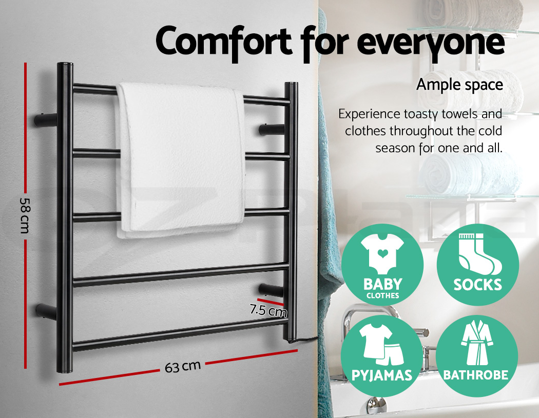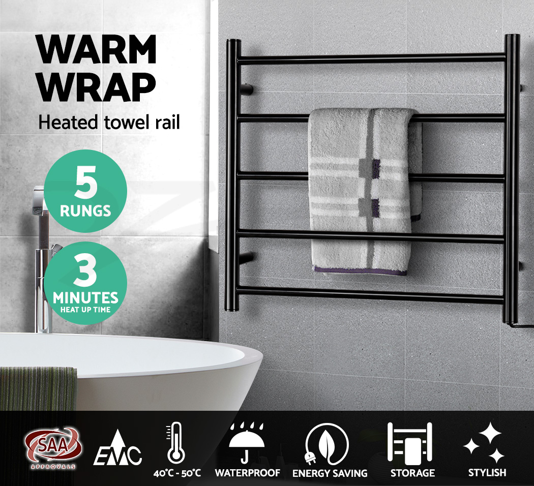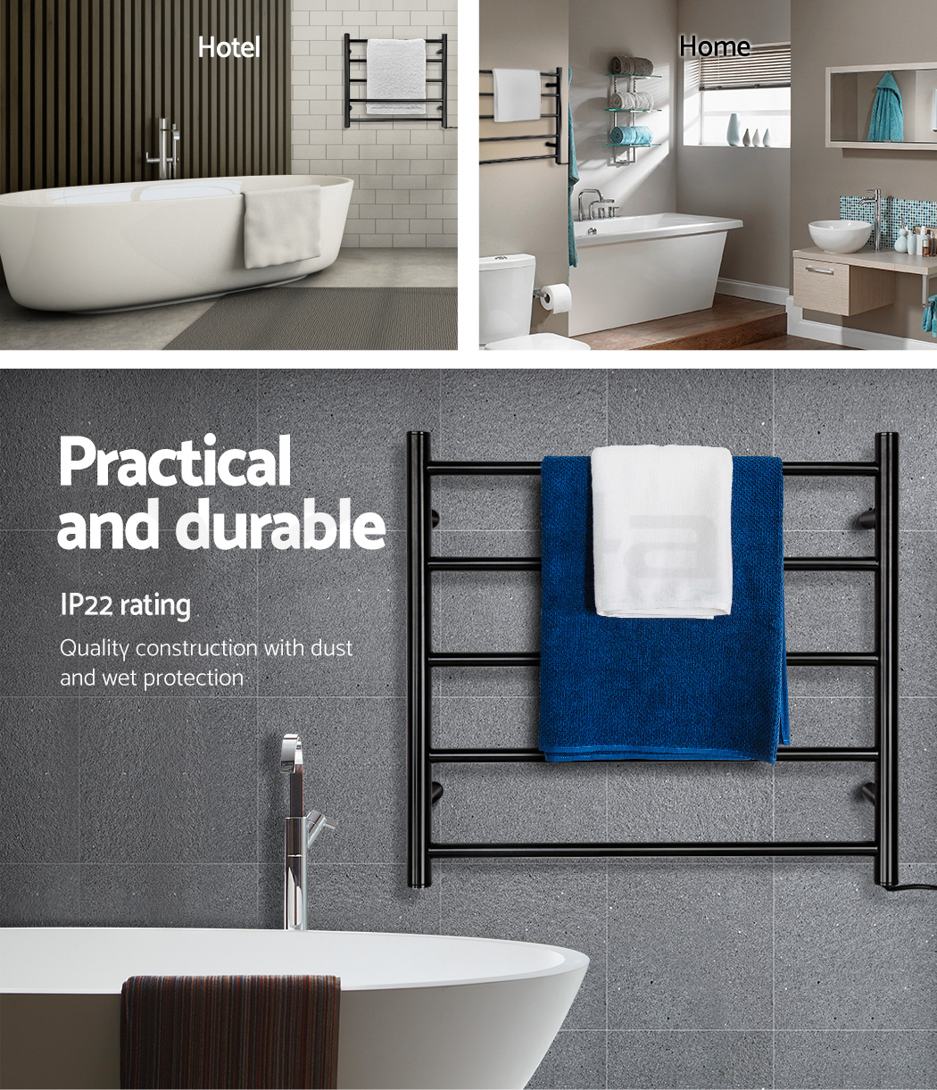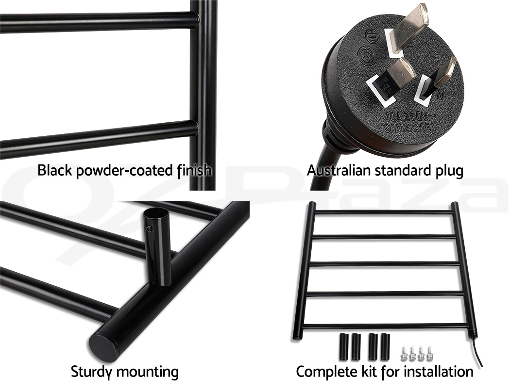 Nobody likes getting out of a warm shower with a cold towel to use. Especially with the cold season upon us. That is why our Heated Towel Rail is just perfect to give you that nice, warm feeling after every shower or bath. Made with black powder-coated steel, the Tower Heated Rail is elegant in design and looks great in any bathroom. It comes with durable wall-mounting supports for easy installation and the five heated rails, with a constant temperature of between 40℃ and 50℃, are adequately thick to provide substantial heat to warm up even the thickest towel. And despite this palpable heat, the Rails are still safe to touch at all times. The entire ensemble is designed to be energy-efficient and works silently. The IP22 rating means that it is safe for use in wet areas and is also dust-resistant. Not least, you can certainly do more with the Rails such as drying out clothes, baby apparels and other similar items. So enjoy warmth in more ways than one with the Heated Towel Rail. Get yours today.