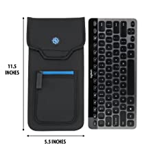 The Compact keyboard sleeve fits most bluetooth or compact keyboards up to 11 inches in length. The neoprene construction is flexible yet padded to allow for keyboard with various thicknesses and widths to fit.
