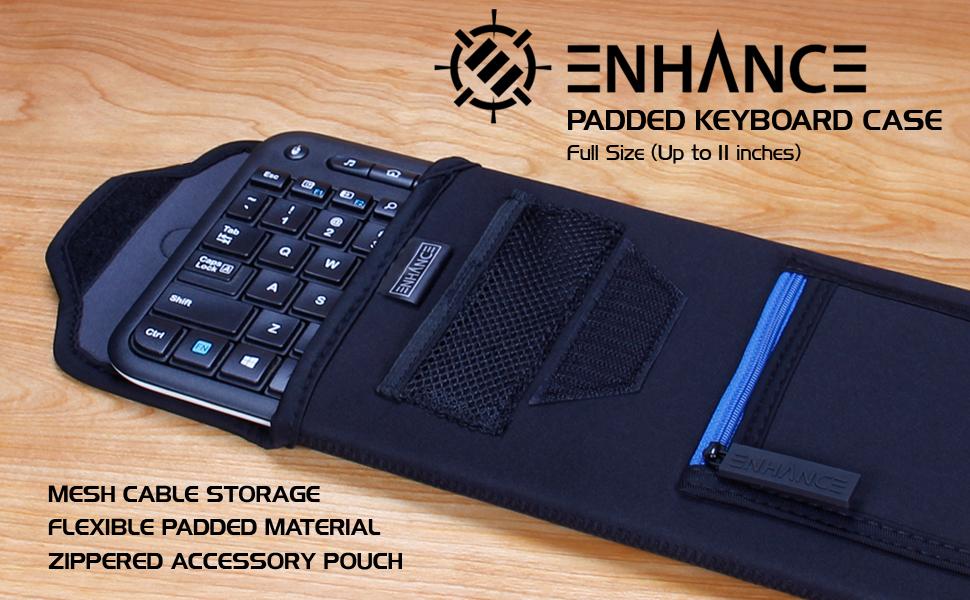 Forget cramming your wired keyboard’s charger into other cases, or letting your keyboard’s wireless receiver float around in your bag; the ENHANCE Keyboard Case features an innovative netted pouch that’s perfect for stowing your cable and other accessories.