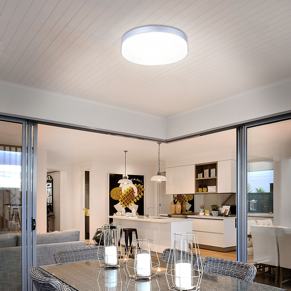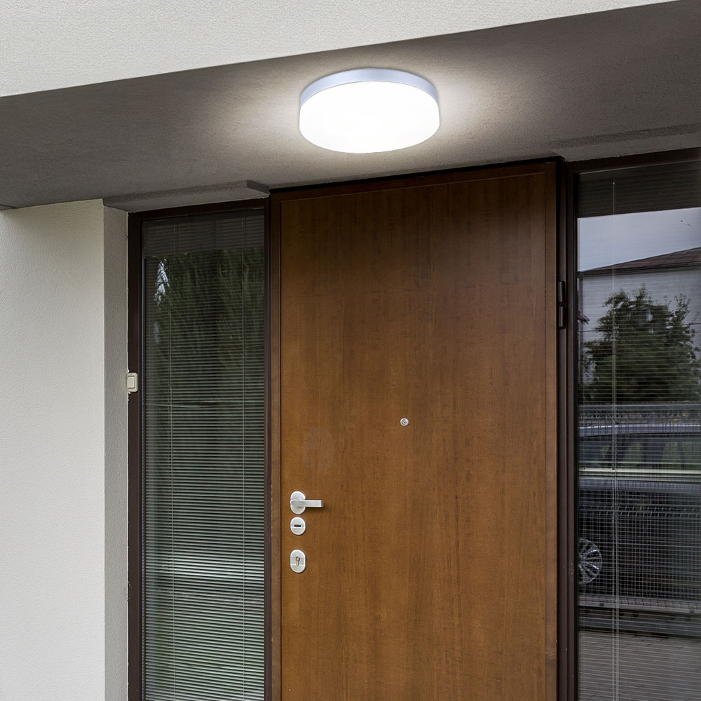Badleuchte Deckenlampe Außenleuchte Lampe IP44 Glas opal silber E27 DxH 30x7 cm