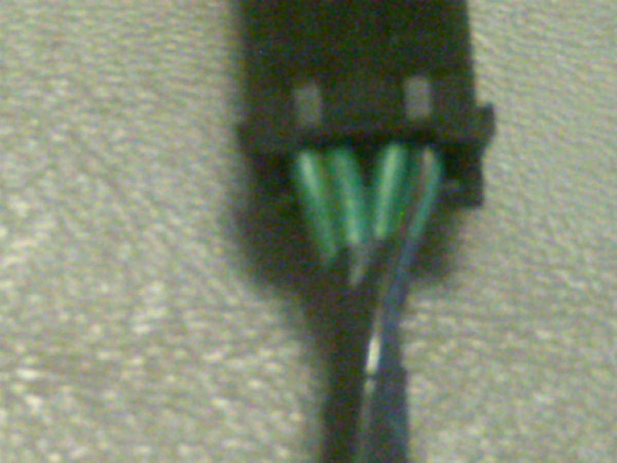 Their were different audio upgrade options for these years, so, compare the color wires to these pictured and described below. All four of these wires had a GREEN color on them. The wires have been cut as seen in the pictures.
